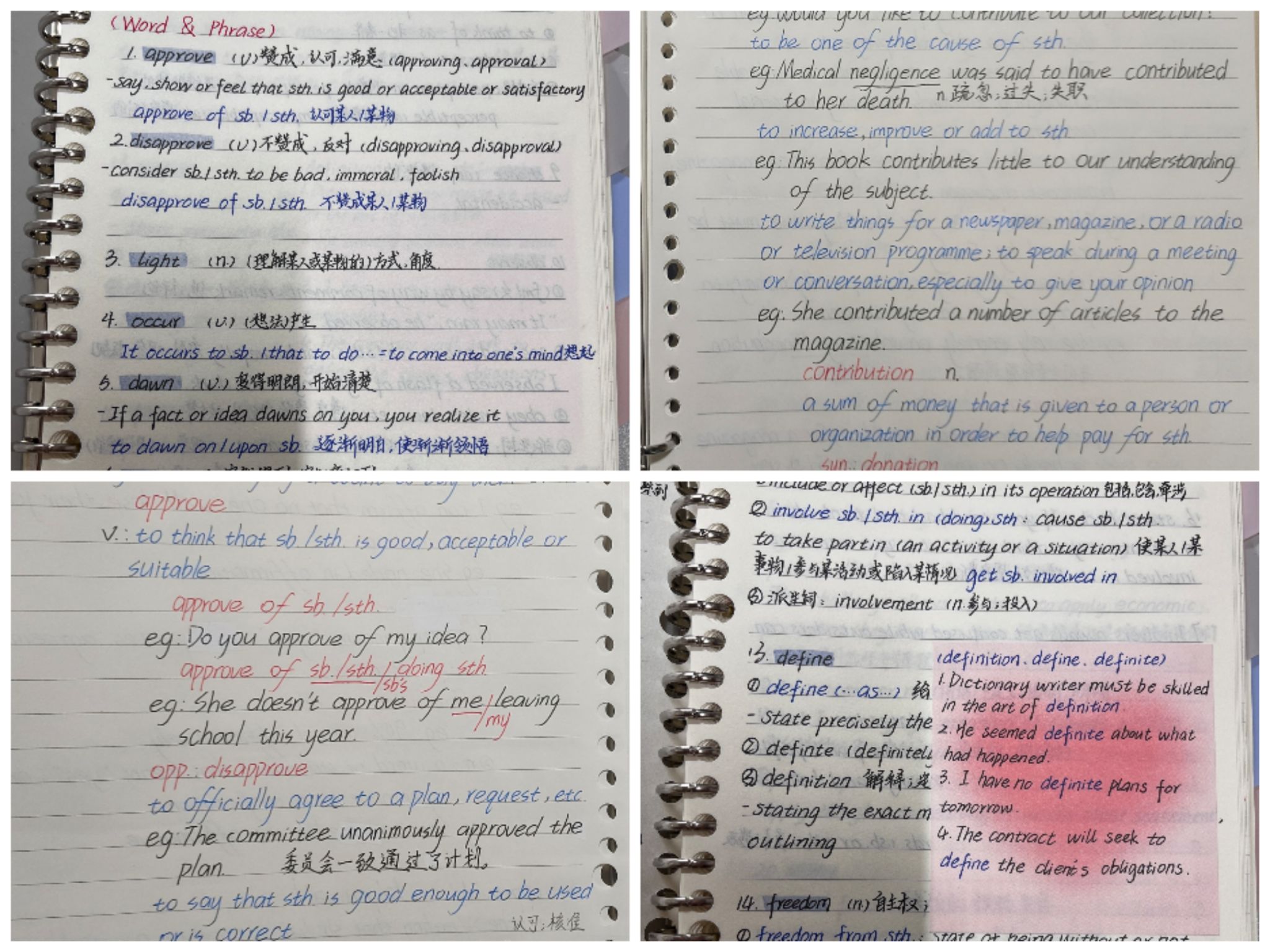 笔尖筑梦,不负韶华。俗话说:“好记性不如烂笔头”,笔记是一种系统性的记录。通过记录可以让同学们学到的知识变得更加清晰有条理,也可以让知识在记忆中变得更加牢固。外国语学院学习部于2023年12月在全院进行了最美笔记征集活动,落笔生花,墨写芳华。同学们的笔记内容充实、简洁工整,一笔一划之间,凝聚着同学们的勤恳与专注。