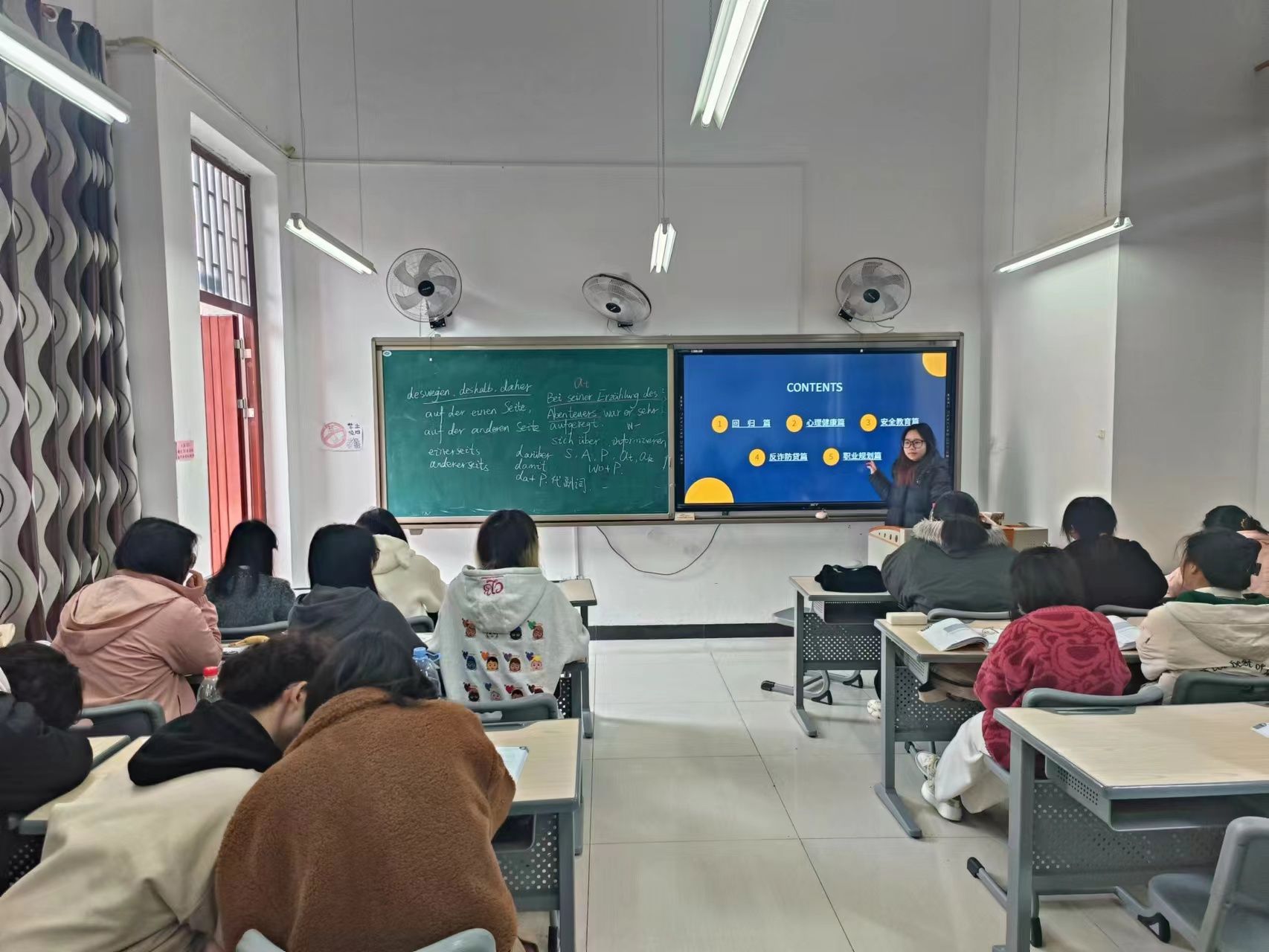 “开学第一课”具体包括回归校园、心理健康、安全教育、反诈教育以及职业规划五个部分。关于“回归校园”于老师讲解道,同学们应建立积极健康的学习心态,从容地面对学习;心理健康、安全教育、反诈教育一直是学校教育的热门话题,于老师通过《开学第一课》,引导同学们提升心理素质,强化安全意识与自我保护能力,并以实例揭示诈骗手段,提升同学们的防范意识;在职业规划中,于老师告诉同学们要明确生涯目标,科学规划路径,提升自我竞争力与人生规划意识。