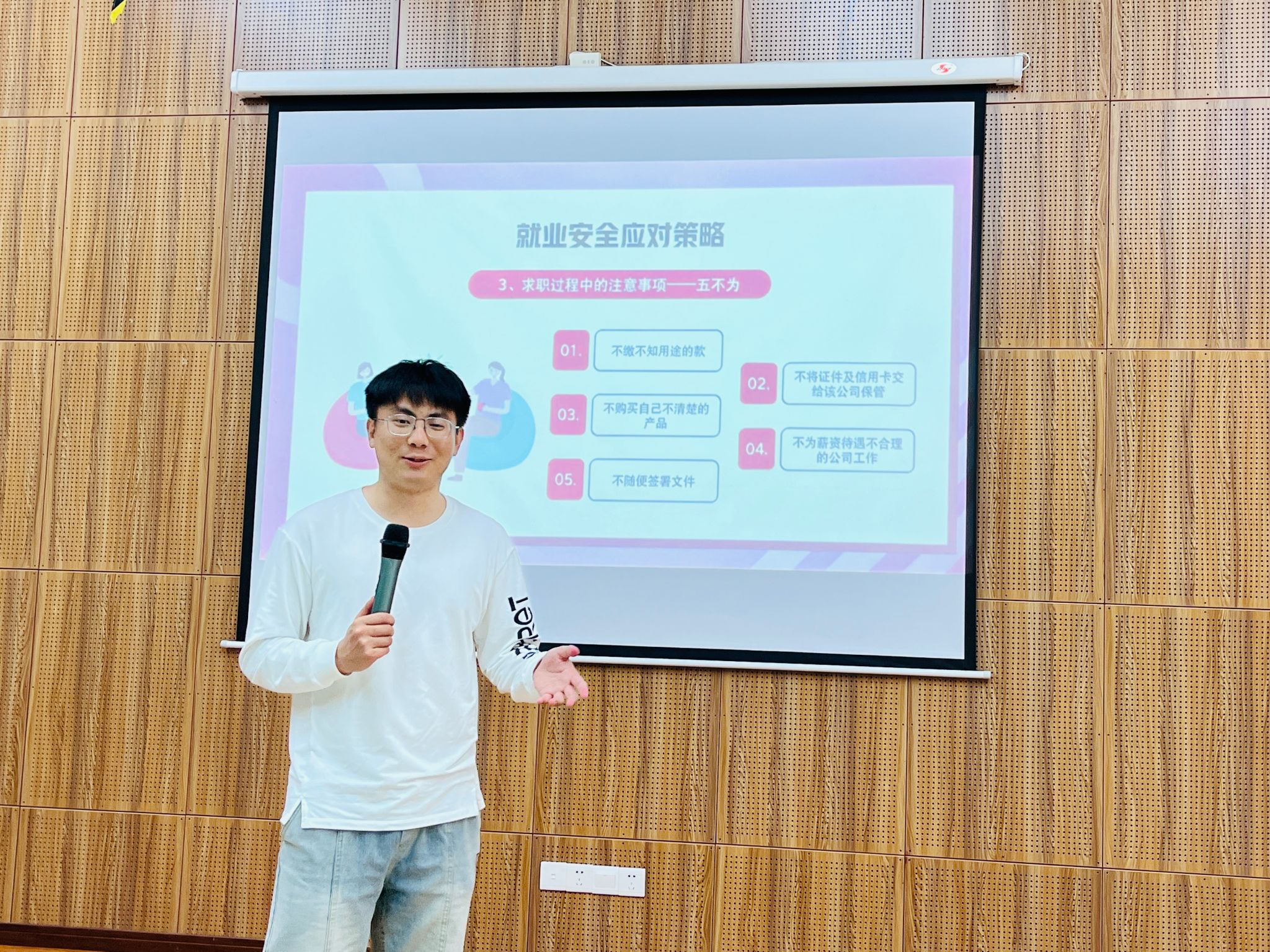 星河为路,此去乘风,遨游在题海里的日子终会摘下璀璨繁星。夏天的相遇,也即将在夏天告别,在这个离开校园“舒适区”,与社会接轨,迎接未知的阶段中,为解答学生就业及权益等问题,外国语学院2020级辅导员兰鹰老师、阳果老师于2024年4月12日19:00,在天渠111报告厅开启就业政策与安全教育年级会。