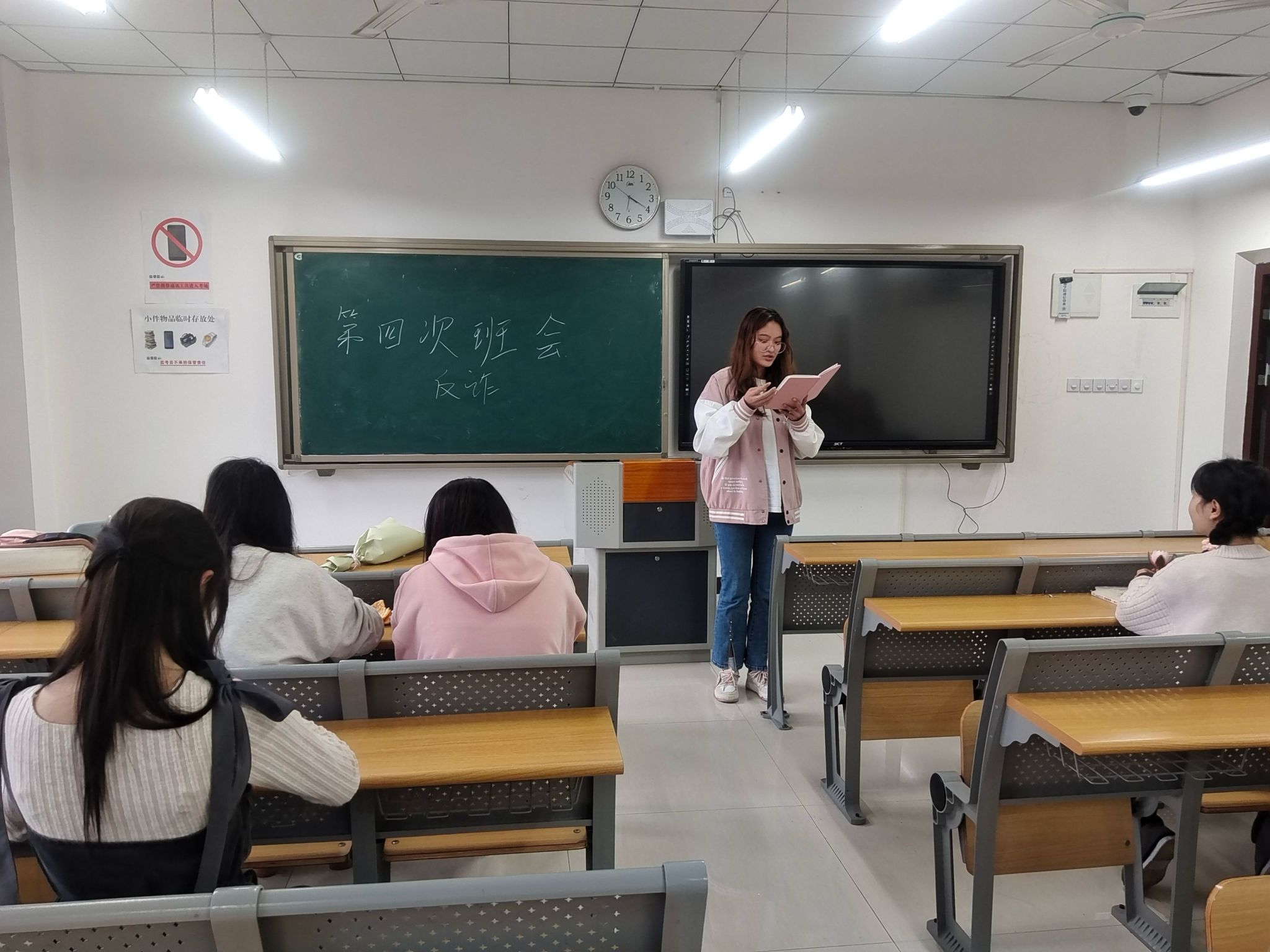 都说诈骗经常对落单的人下手,如果同学们遇到诈骗时,可以向朋友、老师、家人救助。对此,英语五班本次班会以整顿班风为主题,对班级风气进行了系统化的总结与自我反思,对各个班委的职责进行细化分工,强调班委要发挥班级骨干作用,带领同学们更加积极的学习。在活动组织方面各司其职,紧密配合,加强班委与班委,班委与同学们之前的联系,和同学们一起共同组建一个更加积极向上的班集体。