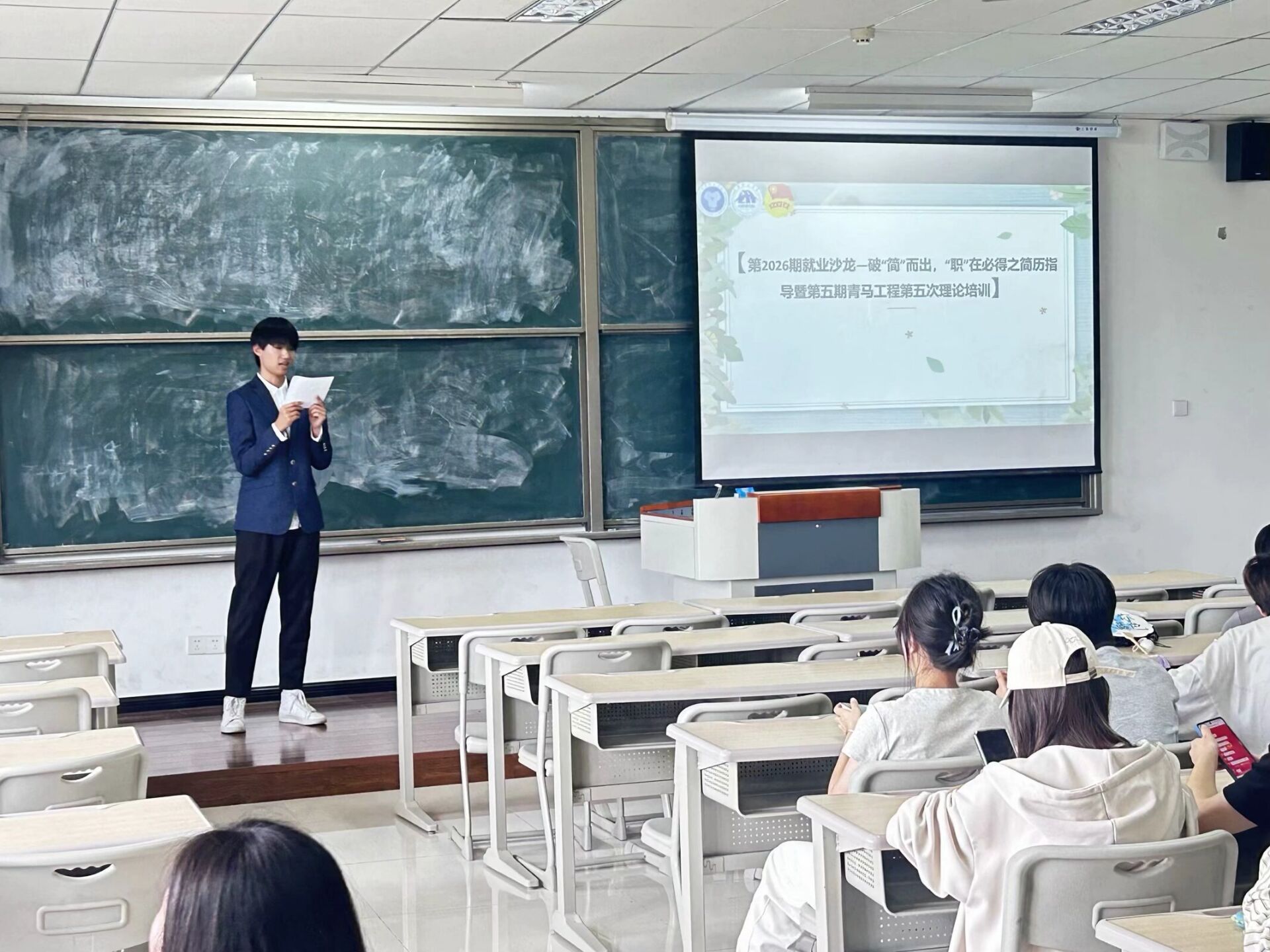 想要在面试中突出自己的优势和特长,一份高质量的简历是至关重要的存在。为帮助同学们更好地认识简历的作用,提高简历撰写技能,从而增强就业竞争力,外国语学院于4月17日在第九教学楼举办此次“就业沙龙——破“简”而出,“职”在必得之简历指导”活动。本次活动有幸邀请到了胡肖潇老师为同学们提供指导,帮助移通学子提升就业成功几率。