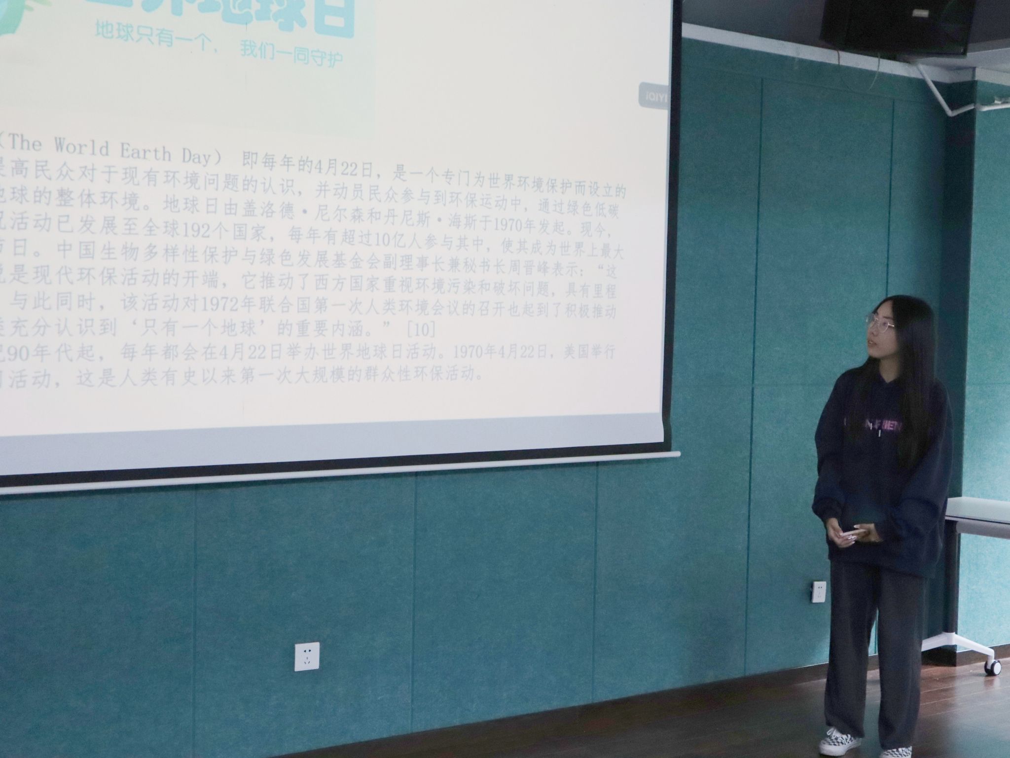 活动开始,班级组织人员为同学们宣讲世界地球日的由来和重要性,地球是人类共同的家园,保护地球就是保护人类的未来。同学们对此十分赞同并且决心要将这一理念牢记心中,并要为此付诸行动。随后,主持人组织同学观看地球日的科普影片,以展示地球和环境的现状。让同学们了解目前地球上面还存在的环境问题和现如今应如何解决地球污染问题。