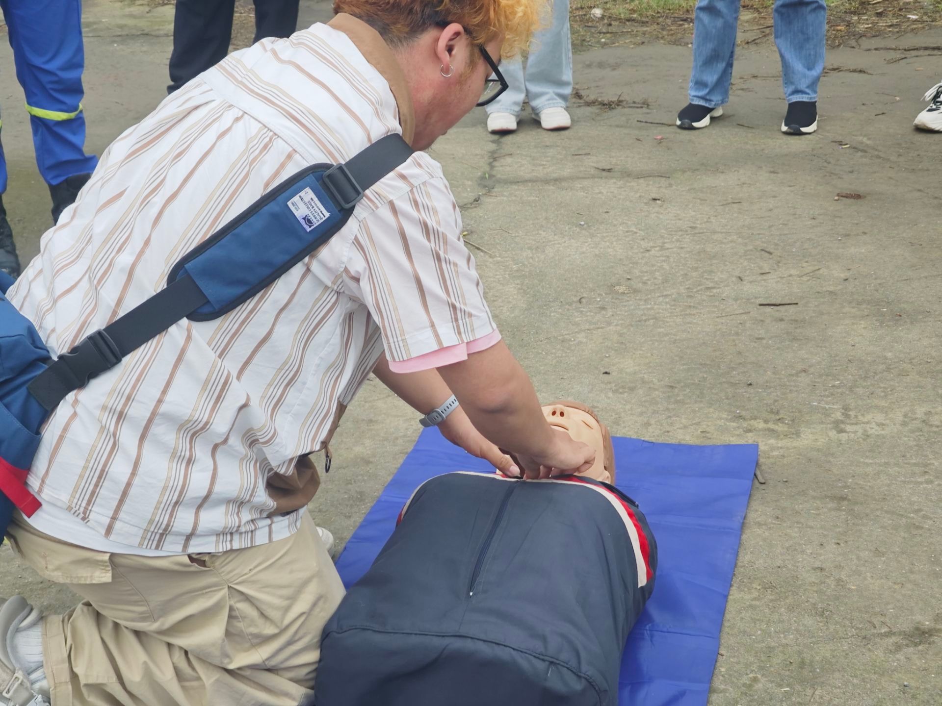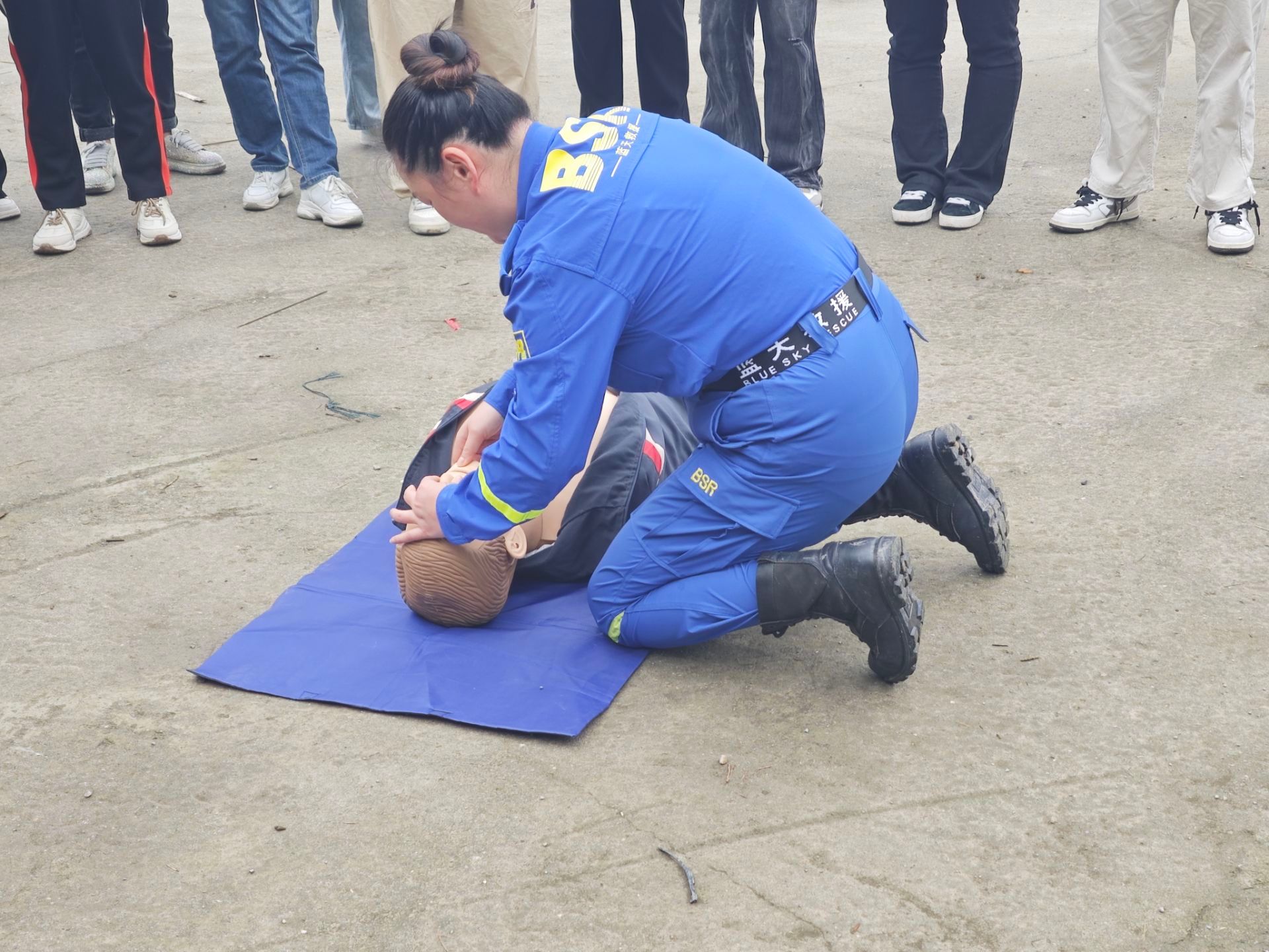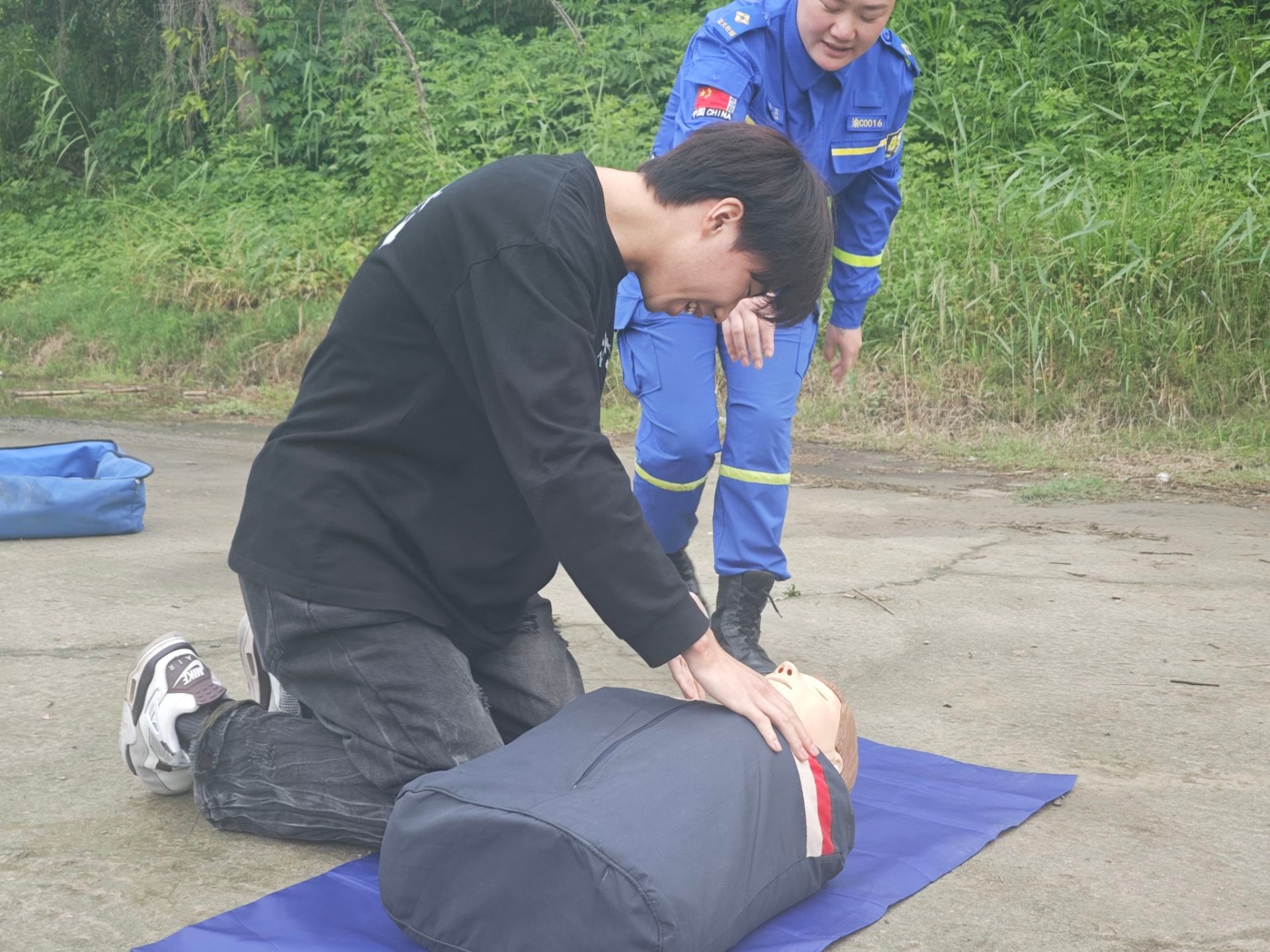 05022213支部成员们怀揣着对公益活动的热情与期待,在下里巴人集结。以合川战备码头为目的地前进,一场旨在提升应急处理能力的急救知识培训即将拉开帷幕。救援队队长首先向成员们介绍急救知识的重要性,并特别强调心肺复苏这一基础急救技能。心肺复苏作为众所周知的急救方法,但是很多人在实际操作中存在许多不规范之处,支部成员们在展现自己的心肺复苏技能时也暴露出救援知识不完备的短处。因此,救援队队长亲自上阵,为大家演示正确的操作步骤,并逐一指出成员们在实践中的不足之处。在救援队员的悉心指导下,大家认真练习,逐渐掌握心肺复苏的正确方法。短短几十分钟的培训,让支部成员更加明白在紧急情况下如何正确应对。