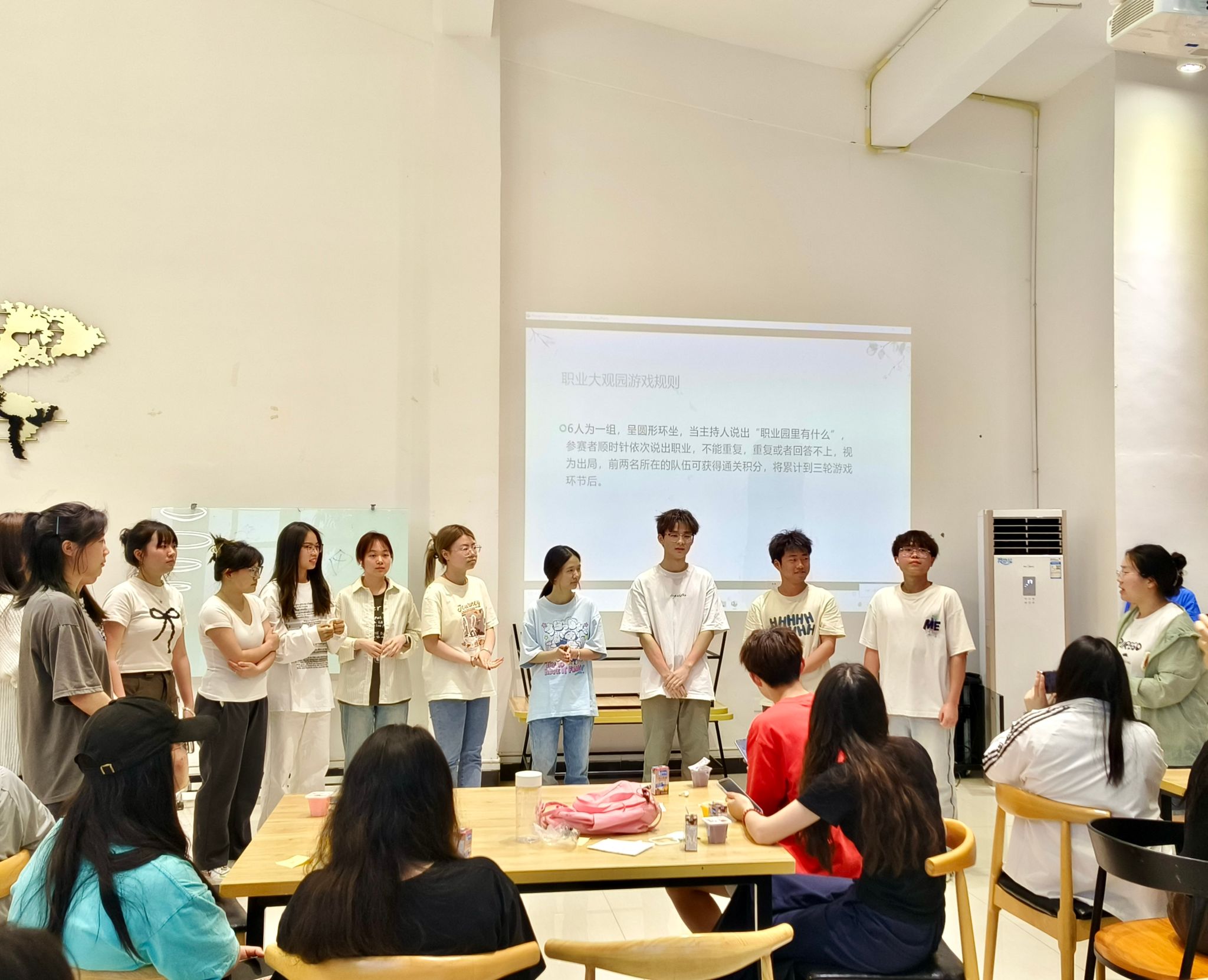 六支队伍各派两人参与此轮职业大观园比拼,大家的思绪围绕“创业”快速转动,考验的是大家的词汇量和反应能力,同时还要确保词汇的准确性和独特性。“逛三园”职业模拟游戏以其独特的玩法和趣味性,为同学们提供深入了解职业的机会。通过游戏,同学们更可以体验到思索不同职业、完成任务、与同学互动等乐趣,从而更加全面地了解这一职业。这种通过游戏了解职业的方式,不仅具有娱乐性,还能够激发同学们的职业兴趣和热情,为未来的职业选择和发展提供参考。