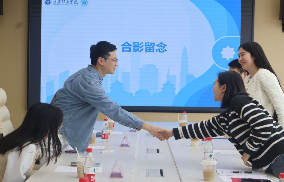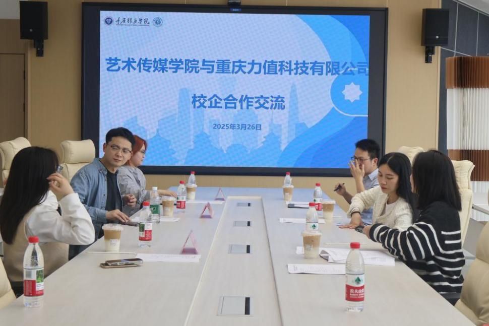 为进一步深化产教融合,探索校企合作新模式,艺术传媒学院与重庆力值科技有限公司于2025年3月26日在天空书院云端会议室开启了校企合作交流会议。艺术传媒学院院长李轶天、学工副院长郭菲,网络与新媒体教研室主任刘根良与重庆力值科技有限公司达人运营总监郑开宇、校园运营魏瑾晗和周影出席会议,此次交流会由郭菲副院长主持。