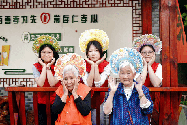 志愿送温暖,簪花入银发。活动伊始,志愿者们早早地来到养老院,脸上洋溢着热情的笑容。他们精心准备了色彩鲜艳的簪花发箍为老人们戴上。当老人们看见自己的照片时,脸上纷纷绽放出灿烂的笑容,开心地欣赏自己的新模样,现场氛围温馨又融洽。簪花结束后,志愿者们和老人们一同玩起了趣味十足的游戏。在紧张有趣的颜色区分游戏环节,志愿者们热情高涨的欢呼声此起彼伏,现场气氛瞬间被点燃。爷爷奶奶们化身"游戏高手",眼神专注,彼此较着劲比拼谁能更快地完成颜色区分任务。整个过程充满了欢乐与惊喜,既锻炼了老人们的反应能力,也让现场充满了欢声笑语。