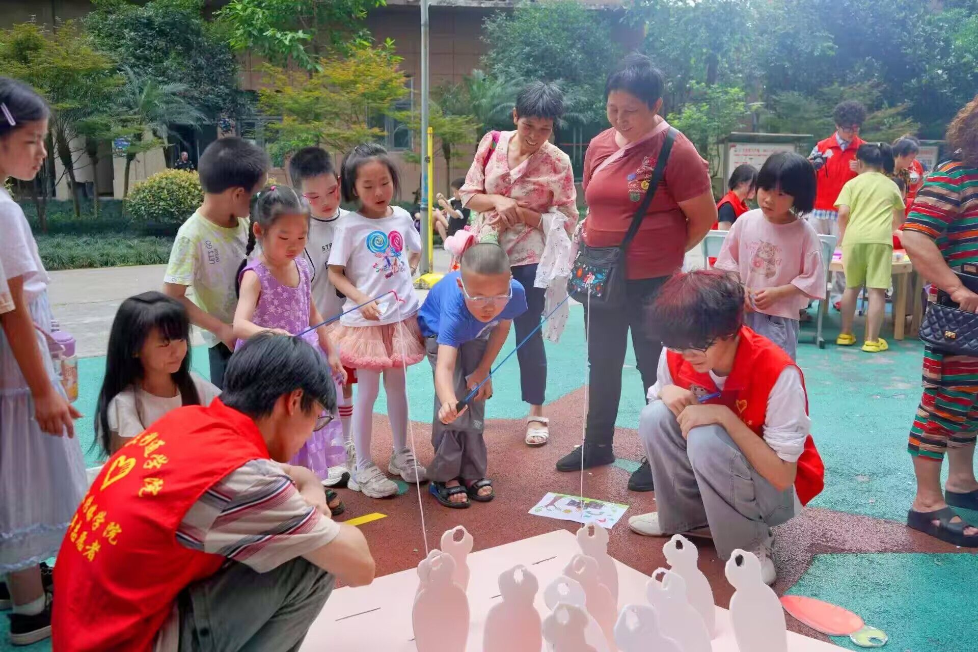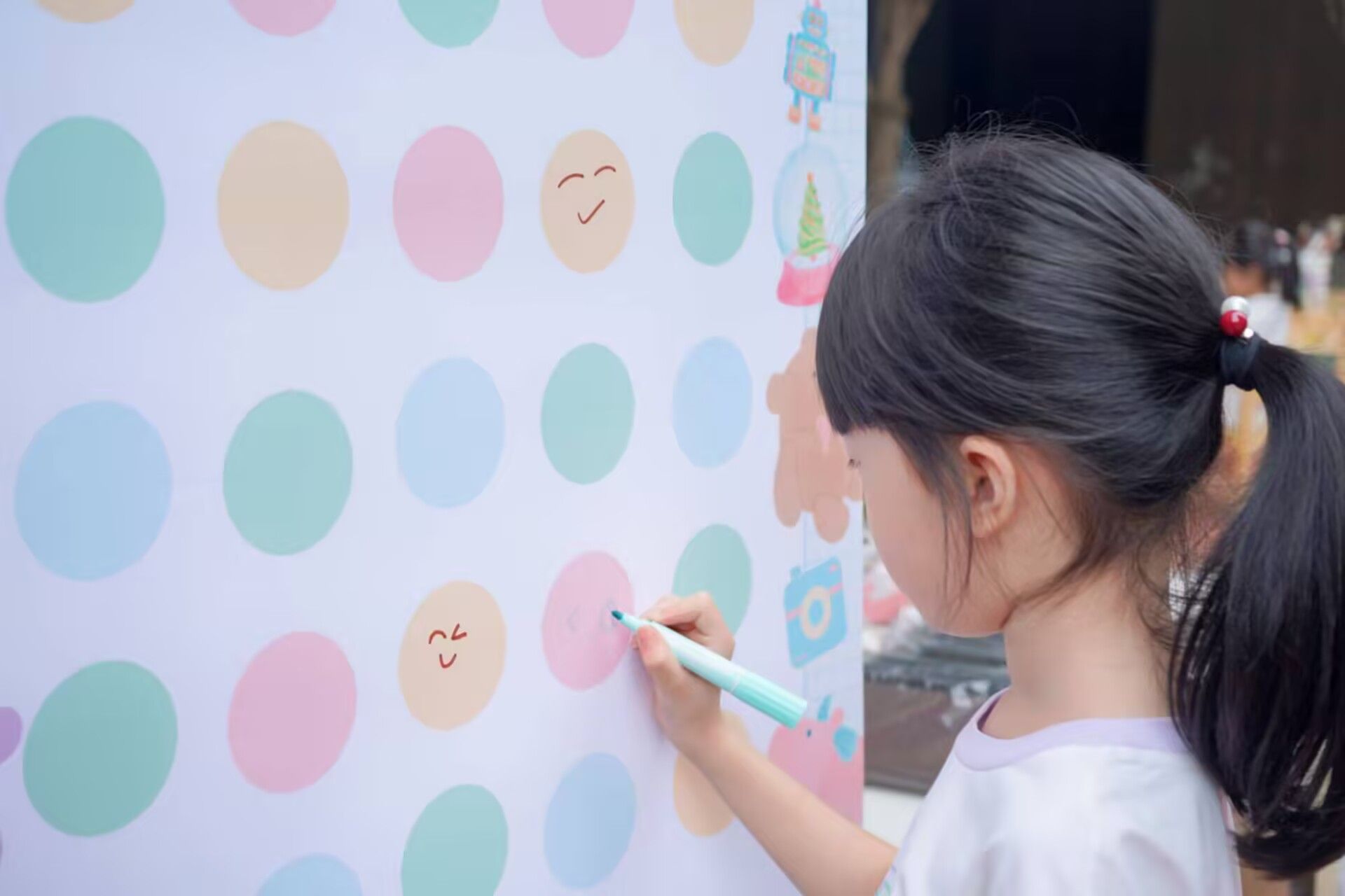爱心汇聚,梦想启程。活动一开始,孩子们在父母的陪伴下,兴高采烈地来到梦想课堂活动的签到区,他们专注地在签到表上绘制自己喜爱的图案,每个孩子都用自己的方式表达着内心的期待与喜悦。签到完成后,孩子们如同脱缰的野马,兴奋地冲向了充满乐趣的各个活动角落。在投壶、平衡力挑战、记忆翻翻乐等一系列游戏中,“钓萝卜”成为了最受欢迎的游戏之一。孩子们手握特别制作的“鱼竿”,聚精会神地尝试钓起纸板上的“萝卜”,他们的脸上洋溢着天真烂漫的笑容。而在手工DIY区域,更是人声鼎沸,热闹非凡。一些孩子沉浸在绘画的世界里,手中的画笔在画纸上自由舞动,释放出无尽的创意和想象;另一些孩子则专心致志地制作面具,他们仔细挑选各种材料,巧妙运用胶水、彩笔等工具,将平凡的卡纸变成了一件件独一无二的艺术品。