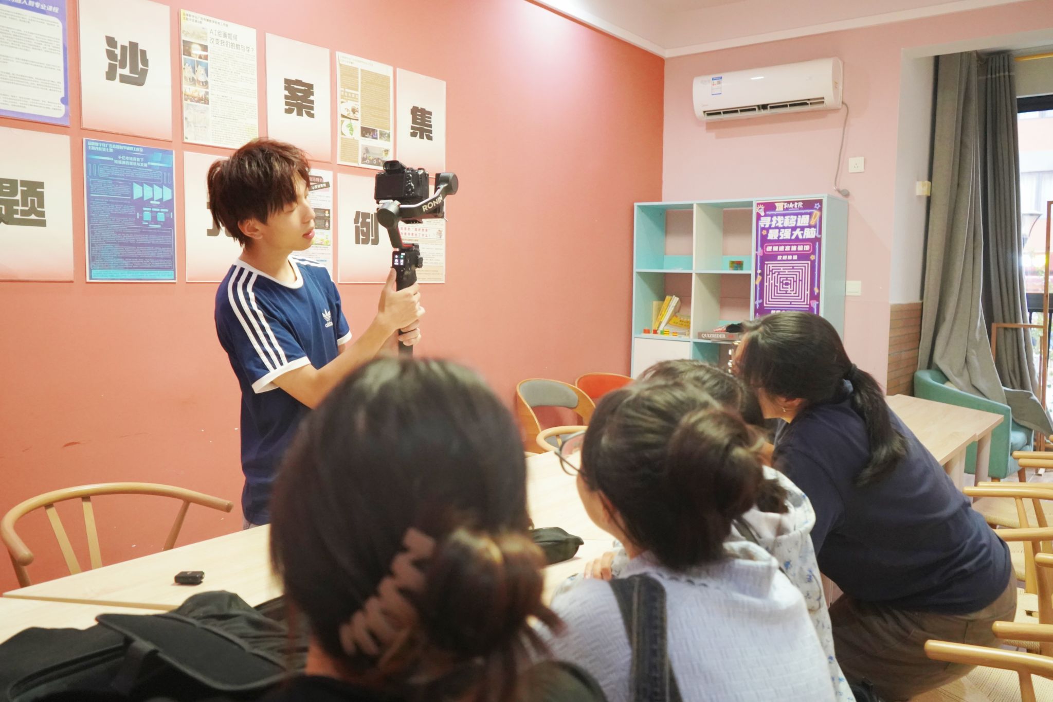 为有效解决志愿活动记录中常见的画面抖动、拍摄不规范等问题,帮助大家系统掌握实用影像工具,为志愿活动纪实等工作储备技能,艺术传媒学院青年志愿者协会宣传骨干于2025年9月26日下午18:00,在别都书院逻辑工厂开展了摄影设备使用与组装专项培训。宣传骨干们准时到场、有序就座,桌上整齐摆放着摄影设备,浓厚的学习氛围扑面而来。