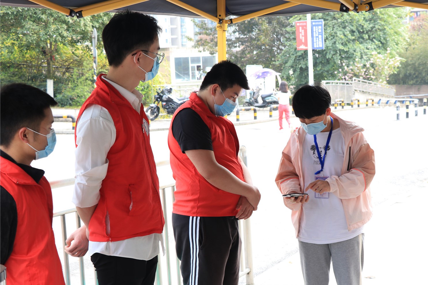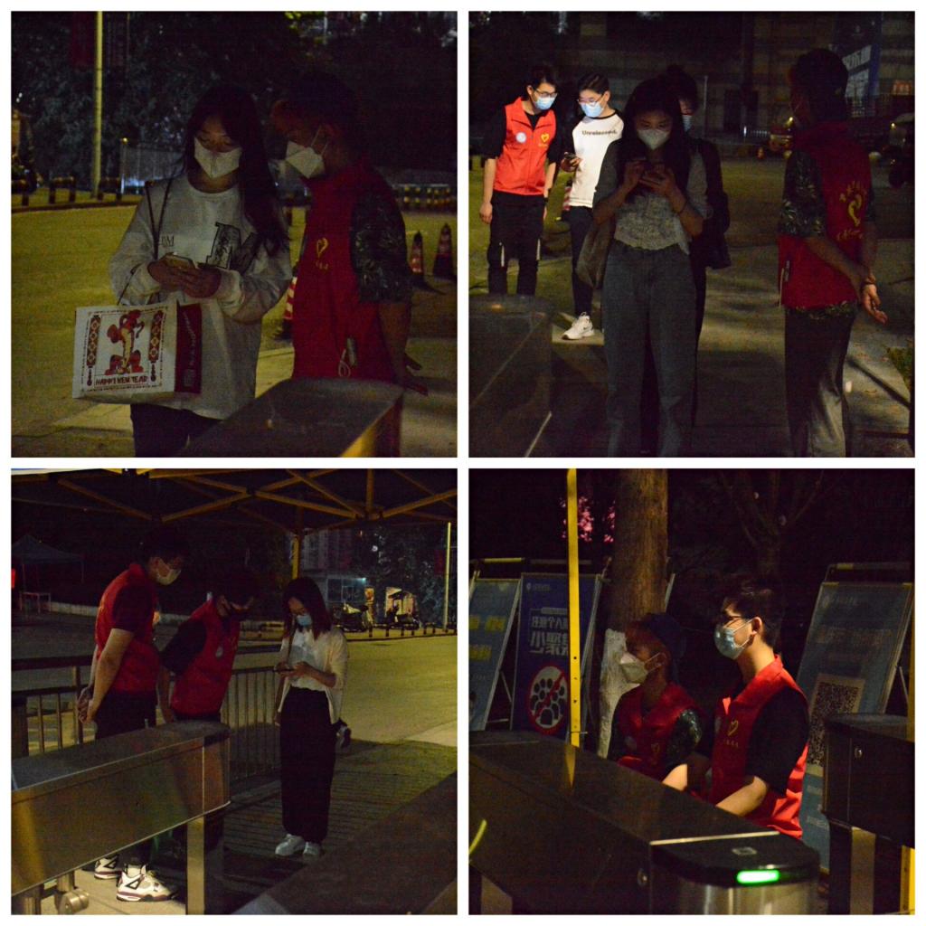 在这一过程中,智能工程学院的同学们作为志愿者进行了多场长时间、高强度的志愿服务工作,他们在学校门口顶着炎热的太阳,忍受着高温天气,以极强的毅力克服炎热所带来的不适与不耐,认真地为每一位进出的人员检查健康码与行程码,并提醒每个人配戴好口罩,认真努力地完成了学校疫情防控工作领导小组和防控指挥部所下达的任务,为进出学校的每个人以及校内人员的健康安全做出了保障,为学校的疫情防控工作贡献出了自己的力量。