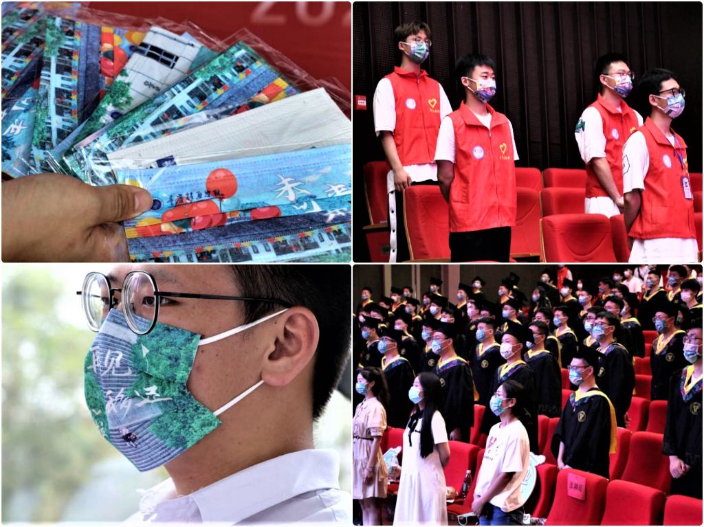 6月19日,正值毕业典礼,学院将两个优秀创意系列印制在口罩上,在学院的毕业典礼上送给现场的每位毕业生。虽是一份小小的礼物,却包含学校满满的心意,学校此举旨在提醒毕业生们具备防疫意识,也表达了对毕业生们深深的祝福和关怀。毕业生们收到礼物后,都感受到了学校的用心,智能工程学院学生工作办公室刘桃主任表示:“我们拿到这套口罩眼前一亮,为创意点赞,衷心祝愿毕业学子前程似锦!”2018级电气工程及其自动化专业的刘瑞同学表示:“这个活动很有意义,将防疫主题和毕业季相结合,很有新意,我很喜欢这份礼物,同时也祝愿学校蒸蒸日上”愿本届毕业的移通学子们能够带着学校诚挚的祝福,奔赴各自的梦想。
