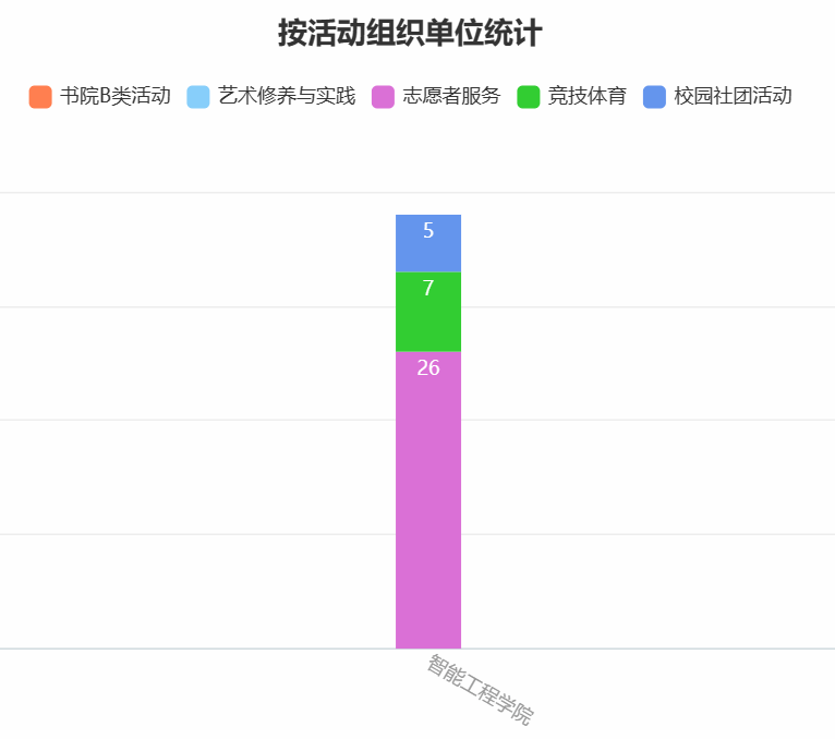 2023年3月,智能工程学院在悠学派线上平台共发布38场活动,涵盖竞技体育、校园社团活动、志愿者服务、艺术修养4种类型,共计参与4165人次,活动平均参与人次为110人。