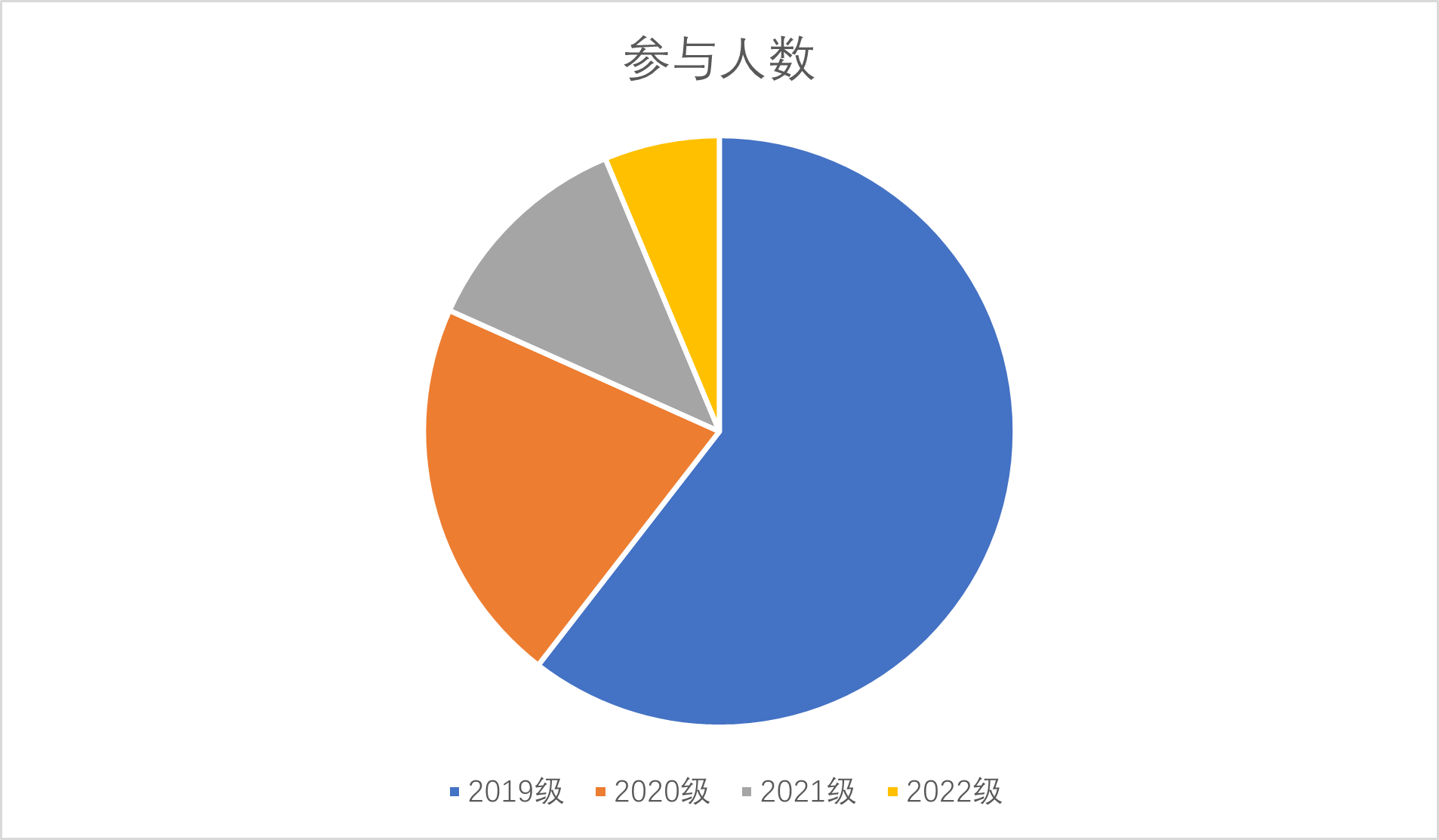 在参与活动的人员中,2022级的占大数为60%,其次就是2021级、2020级和2019级,具体如下图: