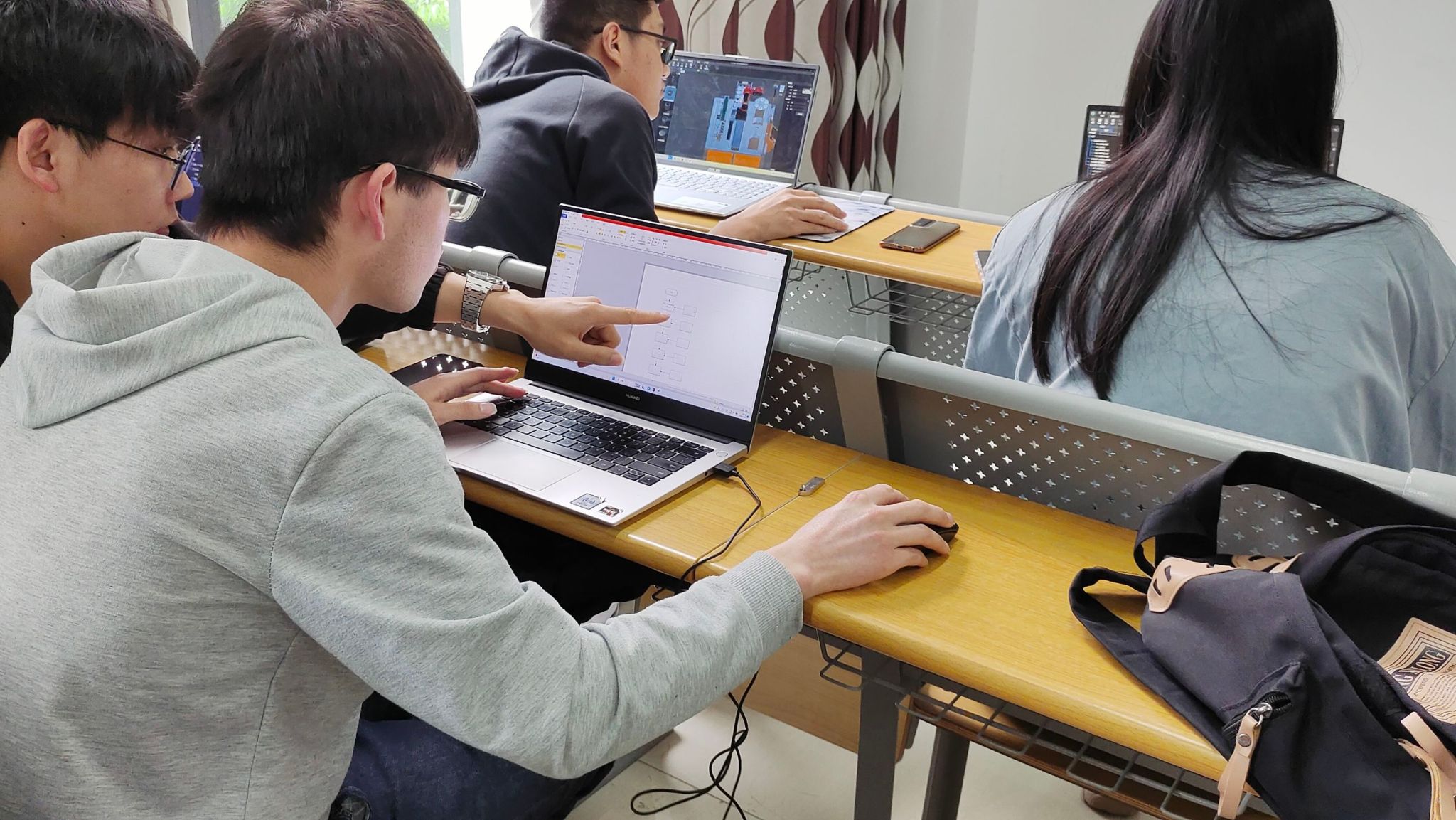 该赛项要求选手根据比赛要求,制定工业机器人装配工艺,然后在给定的软件中选择合适的机器人模型和功能模块,完成电磁式发动机的自动化虚拟装配与运行调试。比赛时间为一个小时,评委们以作品完成度进行评分。其中包括产品装配工艺路径规划、自动化装配工作站搭建、工业机器人虚拟产品装配运动仿真设计等功能实现。比赛现场非常考验团队合作与赛场纪律,若团队成员沟通中出现问题或配合不好,都会对比赛结果造成不可挽回的损失,但整体看来,各个团队间的配合十分默契,在规定时间内顺利完成了调试仿真。
