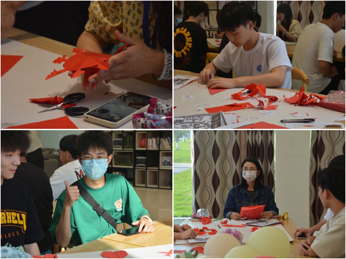 此外,为了纪念五四青年节,缅怀那些为祖国的繁荣复兴做出巨大贡献的英雄们,弘扬五四运动精神,还特别举办了一场别出心裁的动手实践活动——五四精神剪纸。剪纸艺术是中国传统文化的瑰宝之一,利用纸张作为媒介更能突出作者的真情实感。新团员们相继寻找到自己的搭档,团结协作,制作出了一份份精美独特的作品。在这些剪纸作品中,可以清晰地感受到“鲜衣怒马”的少年形象,以及青年时期的热情洋溢和充满活力的特点。