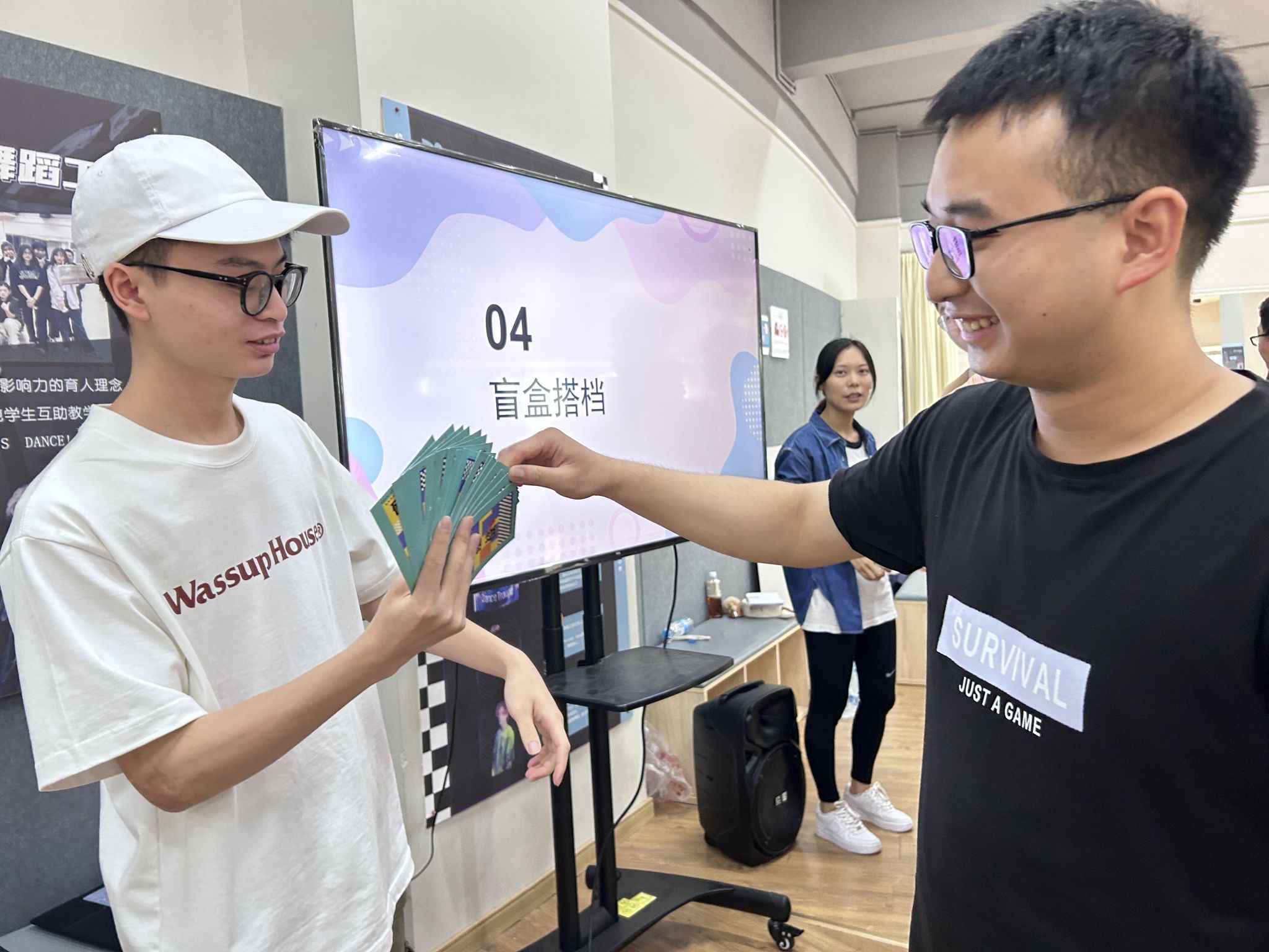 活动接近尾声,为延续彼此间联系,特设置了抽取盲盒搭档的环节。首先由参加本次活动的女生抽取盲盒搭档队友,组建打卡队伍;而后由男生搭档抽取任务卡。并在5月19日-5月24日期间完成任务,反馈照片、心得等相关信息提交凭证完成打卡。本次活动联合三个学院的全生异科导师,为异科导师学生们搭建了一个跨学科、跨专业、跨年级的交流平台,是学科交叉、学院联动、知识共享、融合共建的集中体现。