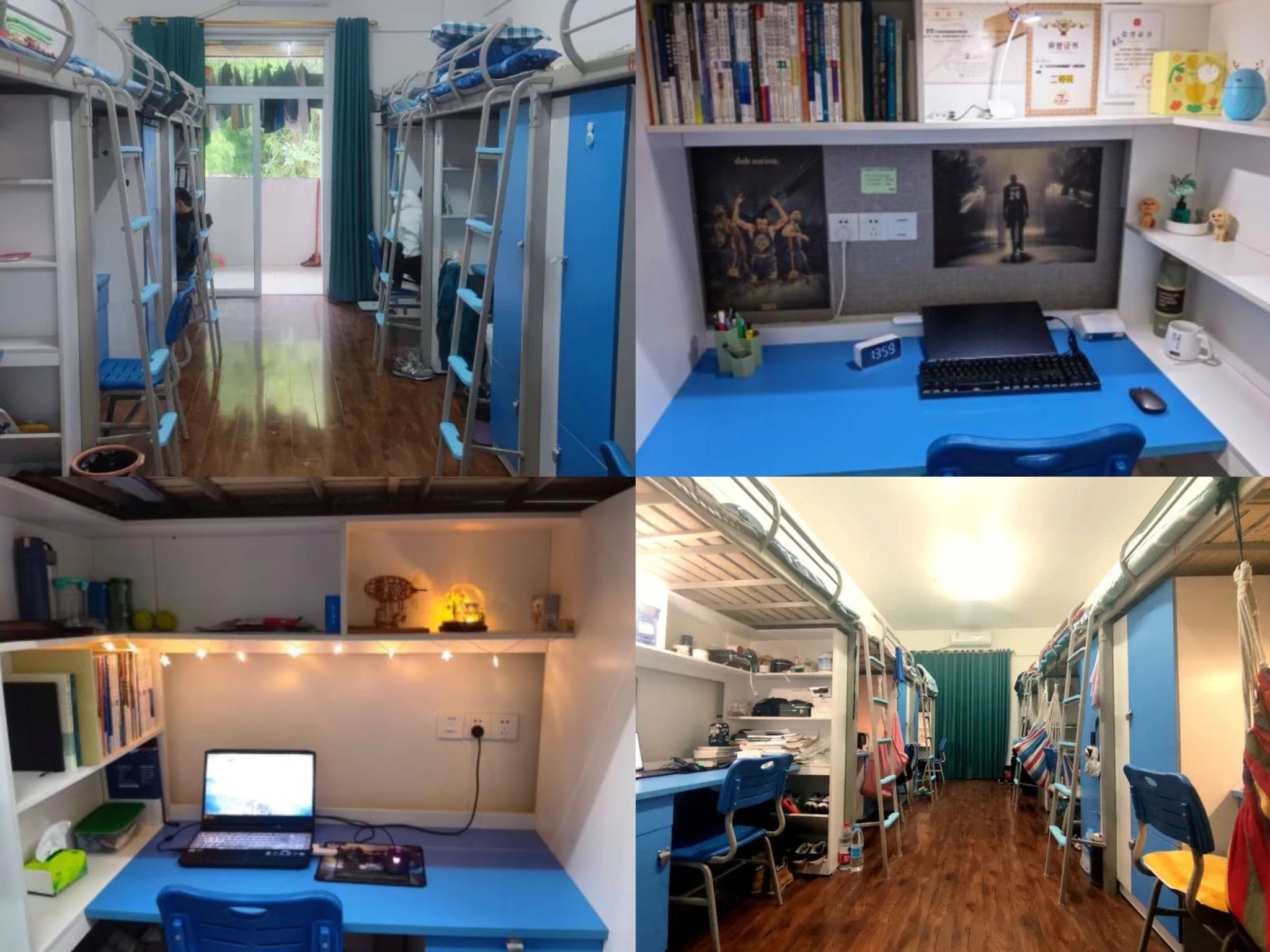 学院一直高度重视同学们宿舍安全、卫生工作,定期开展宿舍检查与走访工作,将文明宿舍创建工作落在实处,保证寝室卫生整洁、避免出现违章电器的使用情况,进一步创造舒适安全的寝室环境。寝室内务实行“六条线”管理要求:被子、枕头一条线,桶子一条线,杯子、牙刷一条线,箱子一条线,毛巾一条线,鞋子一条线。
