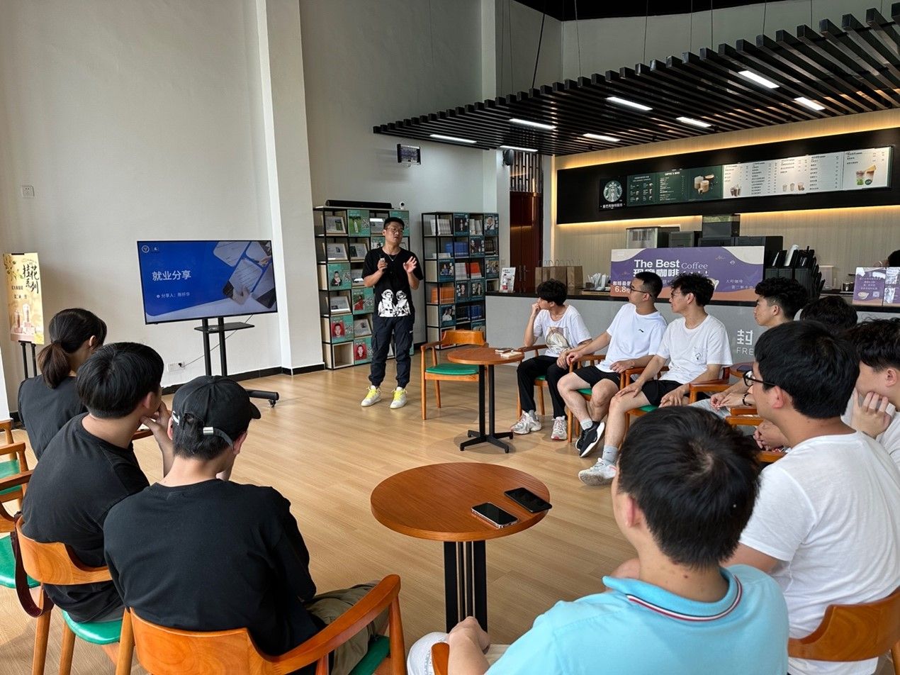 2023年5月31日中午12:30,智能工程学院异科导师杨敏与其指导的2022级电气工程及其自动化专升本6班&7班部分同学,在荷悦星巴克开展以“就业形势与准备”为主题的全生异科导师活动。本次活动邀请到了行者公园书院群学生发展导师,同时担任智能工程学院车辆3班(专升本)全生异科导师陈钎华老师,以期帮助同学们了解智能工程学院部分专业的就业情况,提高同学们的就业意识,提前做好就业准备。