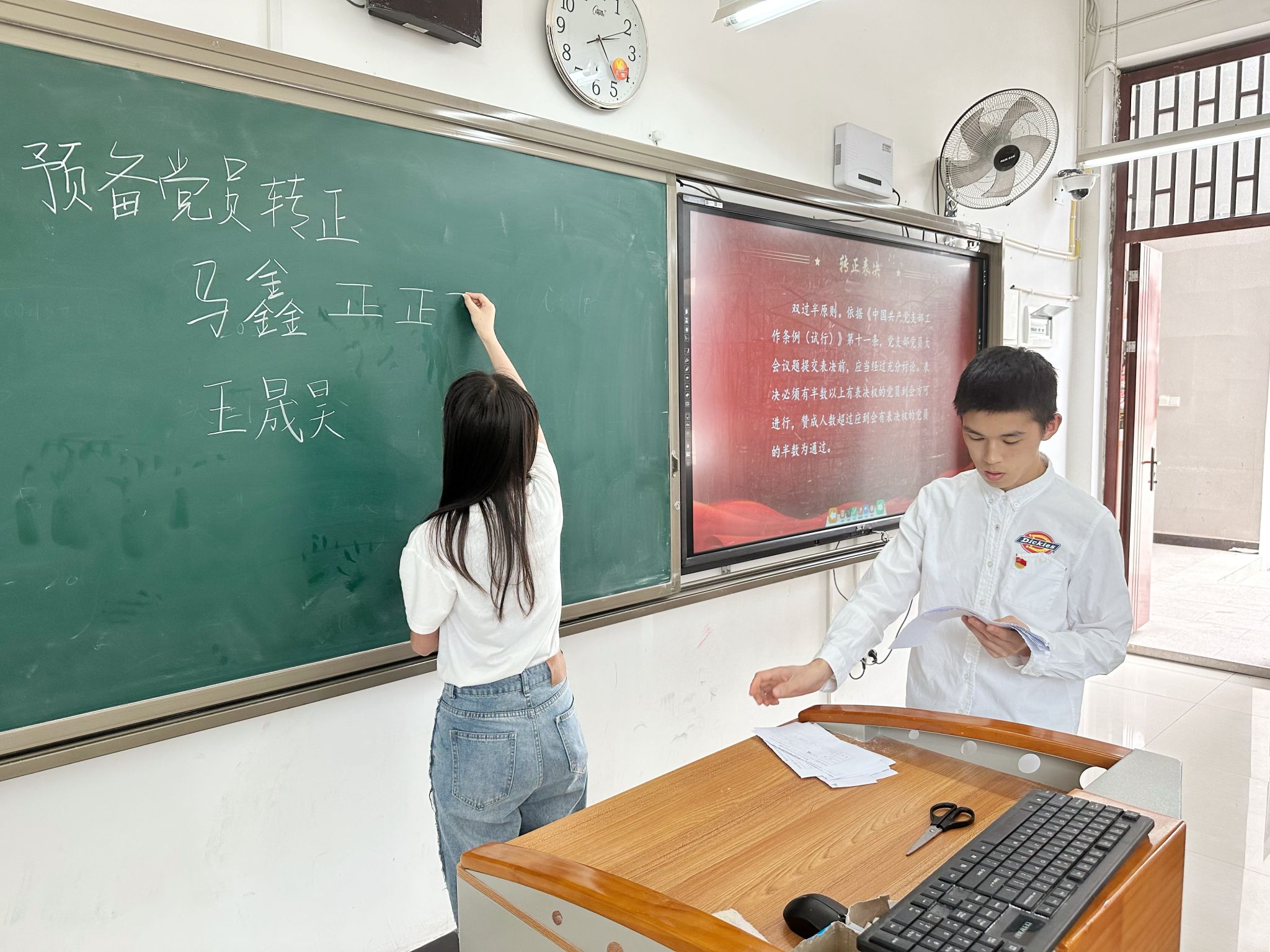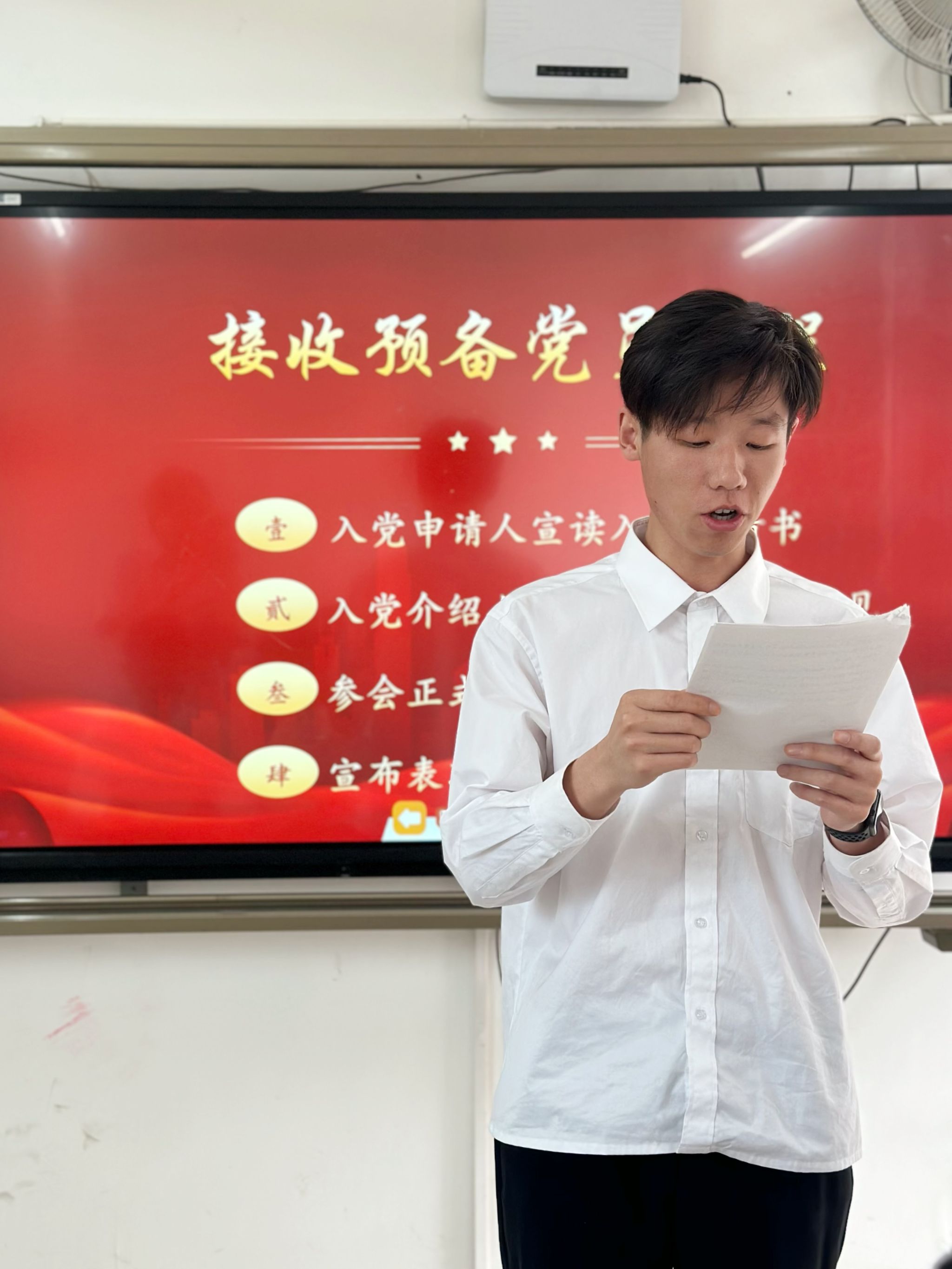 表决结束后,支部书记黄一同志宣布大会通过接收张文东等同志成为中共预备党员、马鑫等同志转正成为中共正式党员的决议。待校党委审批通过,将组织几位新进预备党员同志进行入党宣誓。