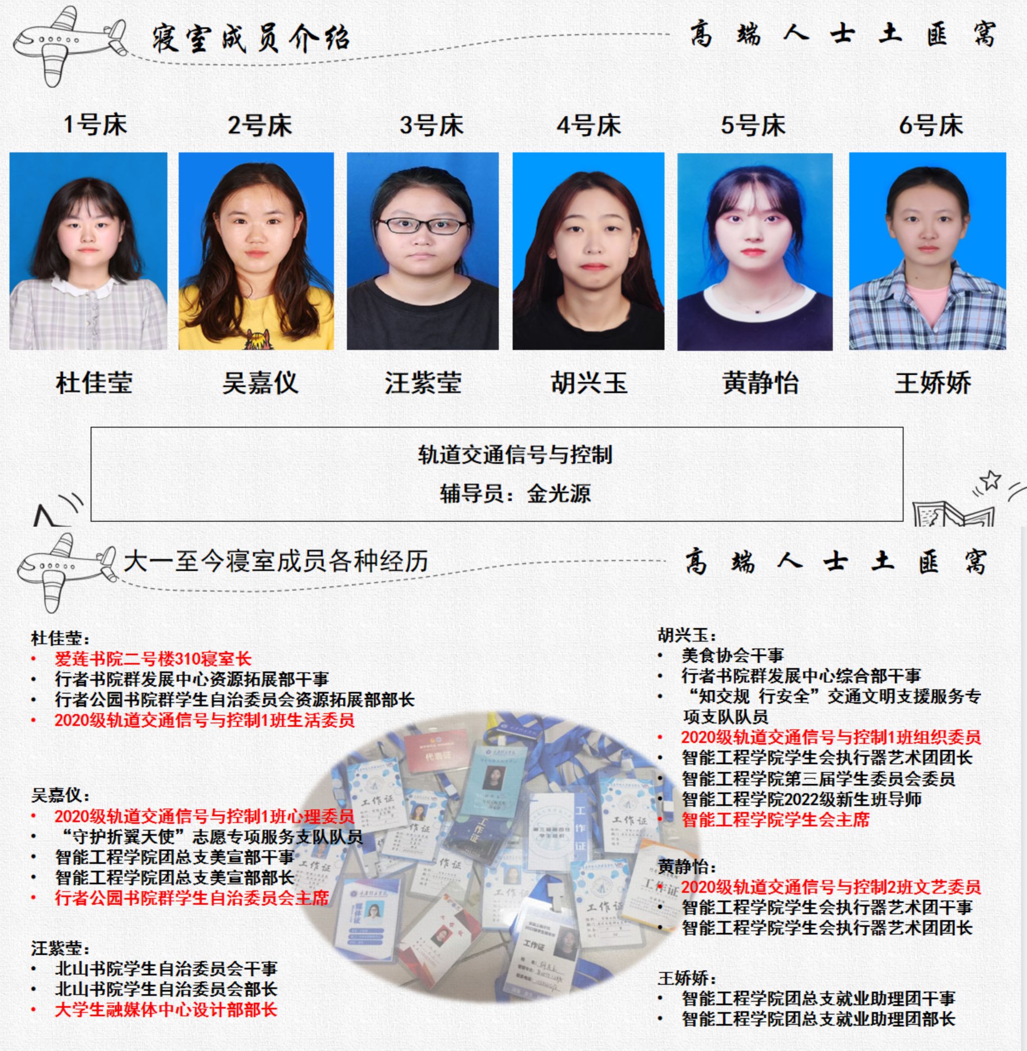 爱莲书院二号楼310寝室,俗称“高端人士土匪窝”,是由3名重庆妹子和3名外地妹子共同组成。山河不足重,重在遇知己。一间温馨浪漫的小屋,几个志同道合的人,一段真诚浇铸的情感,共同创造了在重庆移通学院完满路途上最珍贵的回忆。