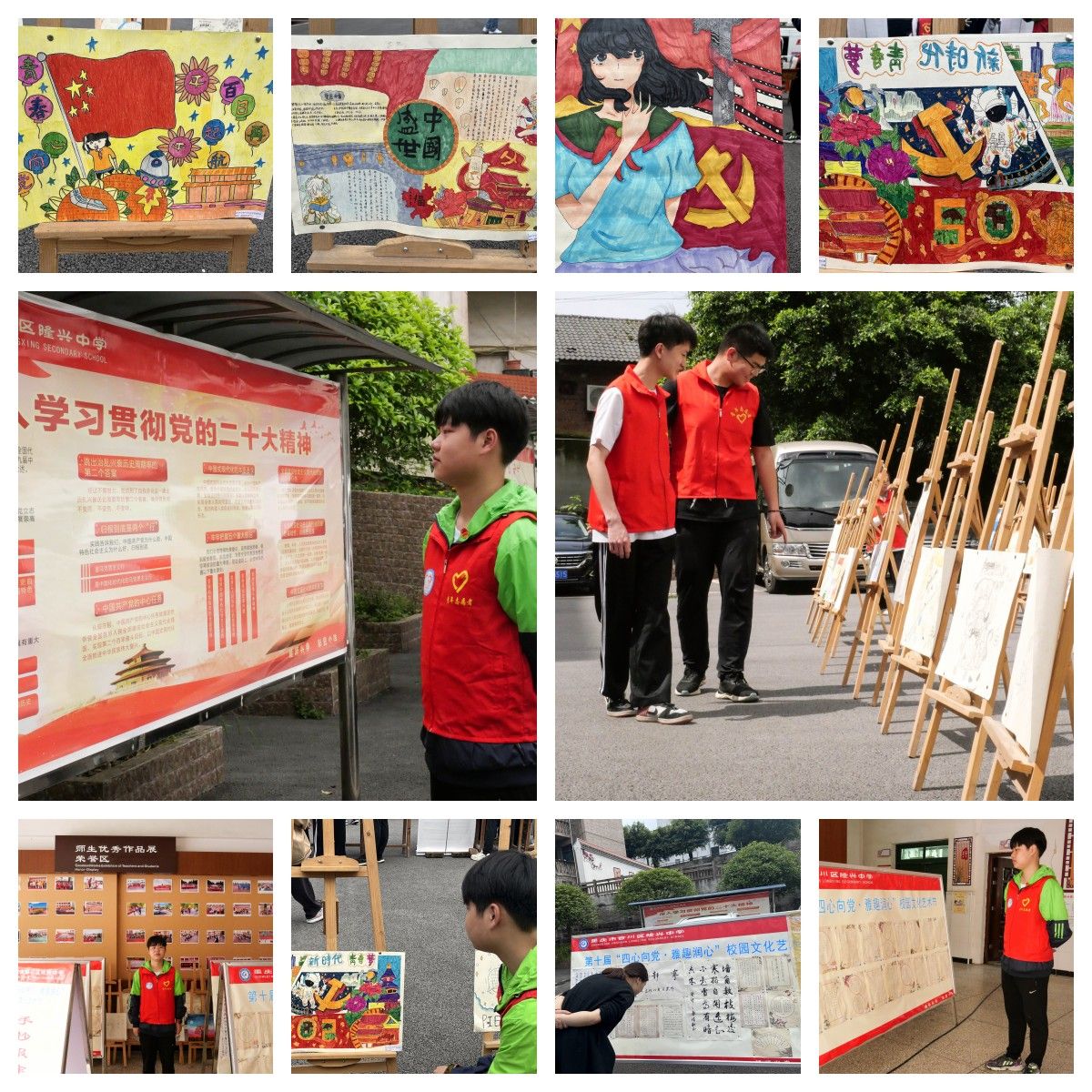随后,党员同志和团员同志参观了隆兴中学第十届“四心向党·雅趣润心”校园文化艺术节。一卷卷书法作品、一幅幅传情的手抄报,深切体会青年学子是唱响爱国爱党最强音。
