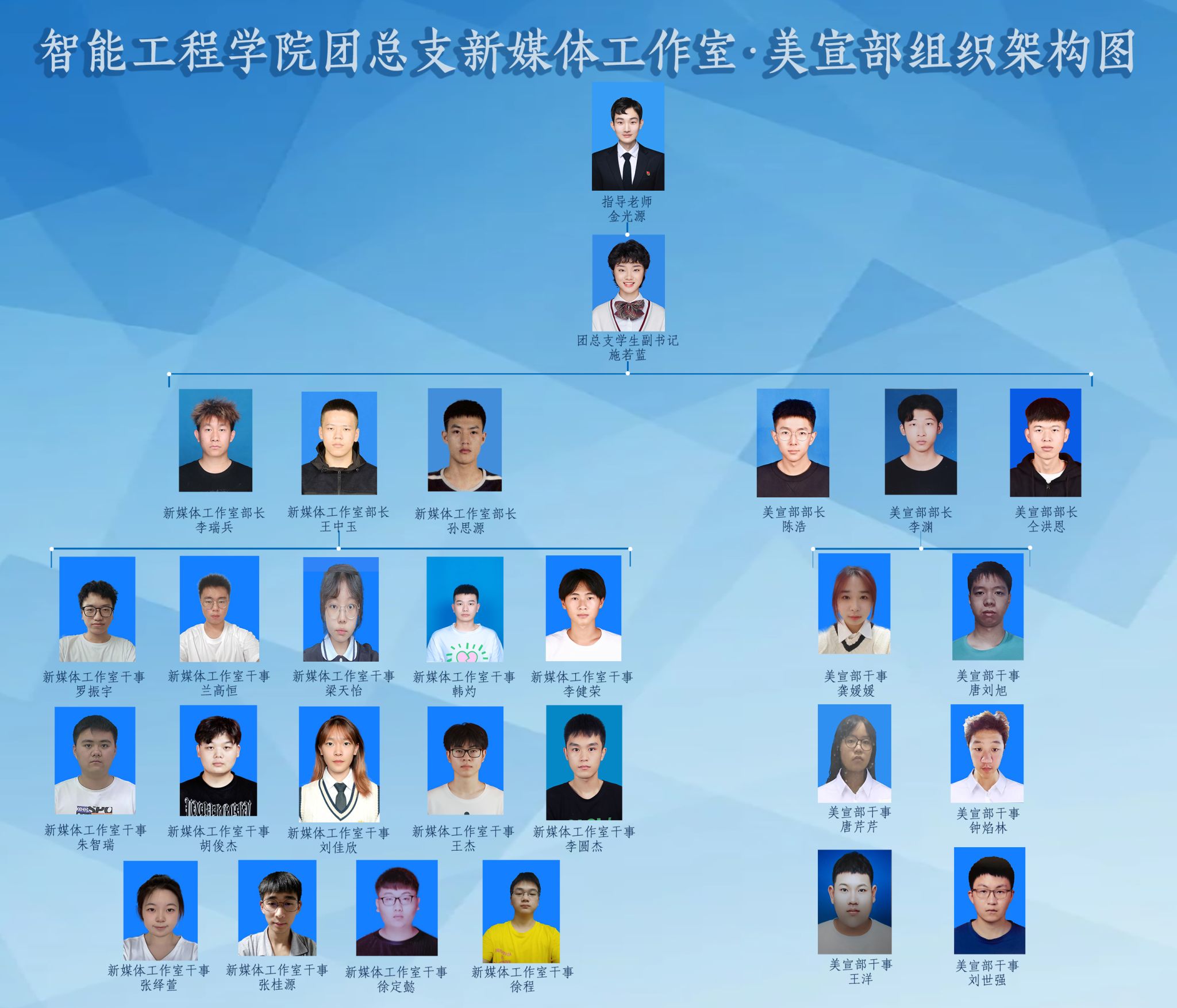 智能工程学院团总支新媒体工作室·美宣部是学院新闻宣传工作的核心队伍,必须“培养好,利用好,使用好”。全体宣传部门学生干部都以主动担当、主动作为,讲好智工故事,传播好智工声音,一直努力为学院新闻宣传事业的进步做出更多的贡献。