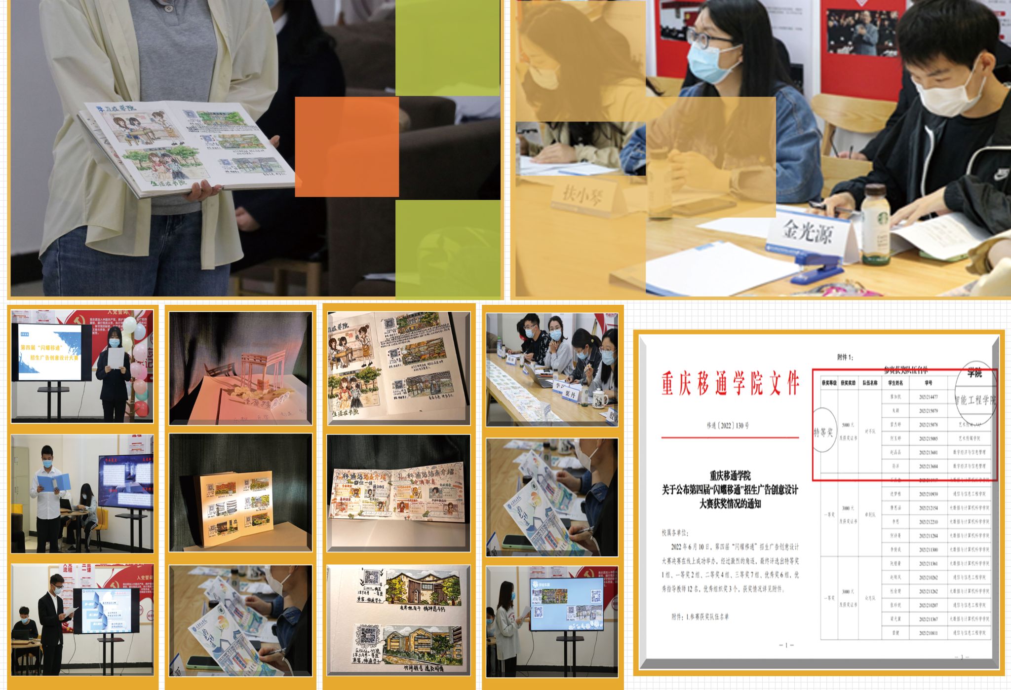 新媒体工作室·美宣部作为重庆移通学院第四届“闪耀移通”招生广告创意设计大赛的协办单位,牵头组织学院预赛和复赛。最终由我院指导的队伍取得“特等奖”的荣誉。