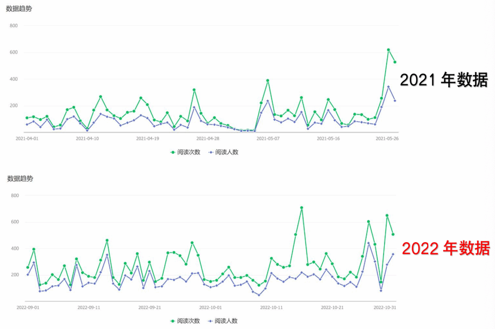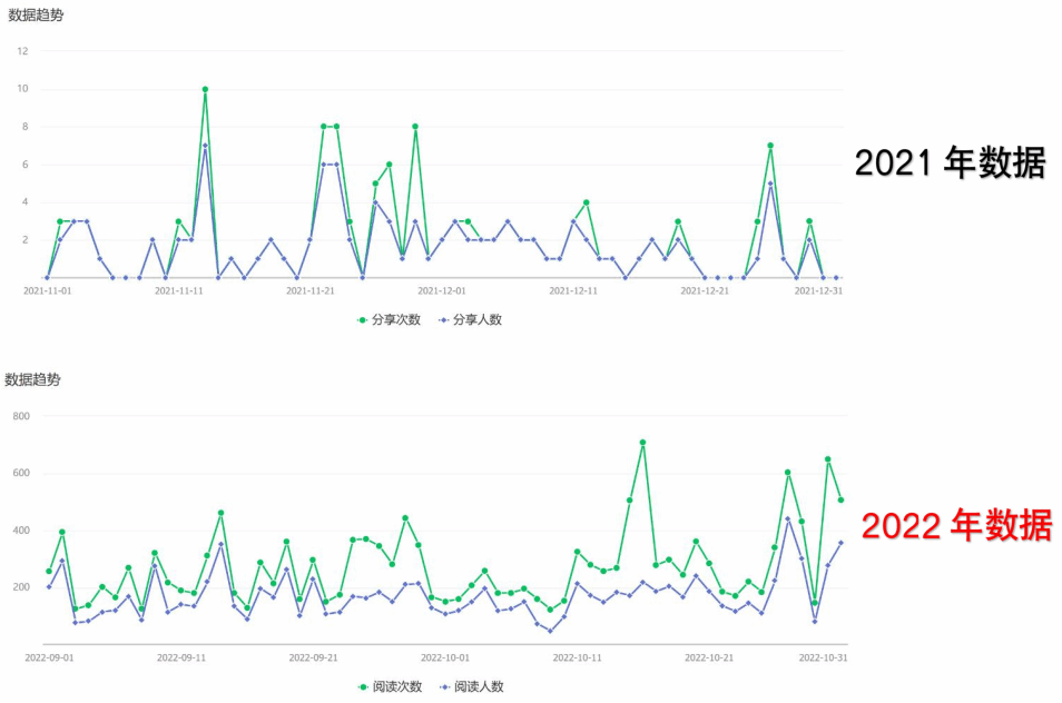 2022年度,微信公众平台“行者小智”的各项数据都表明,平台一直在成长以及进步。2022年度累计发布推文534篇,较上年度增长200余篇,同时浏览量较上年增长10000有余,在宣传板块指导老师的带领下,如今每篇推文的单篇浏览量都几乎可以保证都高于100人次。同样,累计转发、评论、点赞量也稳步上升,单篇点赞量维持在15人次左右,转发量由上年平均10次增长至平均50余次。稳定的增长离不开运营团队每个人的努力,新媒体工作室也将每天数量上的增加转化为坚持下去的动力,争取更大的成功与改变。