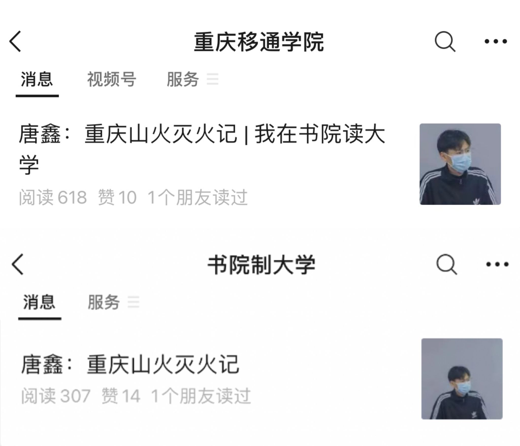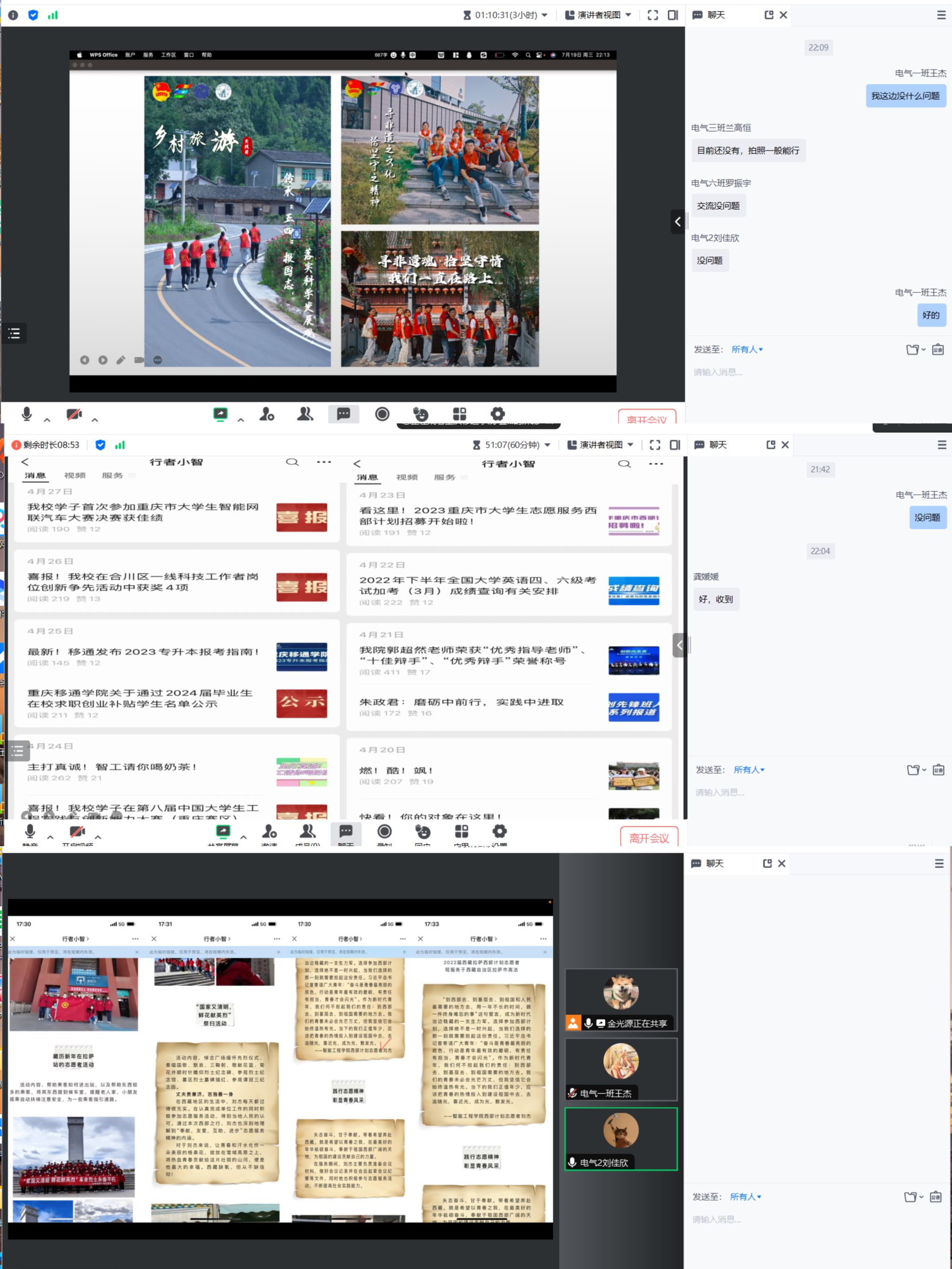 在与学校官方新媒体平台交流方面,“行者小智”与“移通晓英才”的互动是相互合作、相互成长的基础,“行者小智”一直积极向“移通晓英才”投稿,每一篇稿件不仅是向学校展现我院的学生风采以及完满特色,更是向社会展现我校学生的风范。这期间双方平台本着共赢的原则,将宣传学校学院特色以及营造有利于社会进步的舆论氛围和思想基础放到首位,以完满教育为基石,以四位一体为准则,弘扬宣传重庆移通学院的风采。