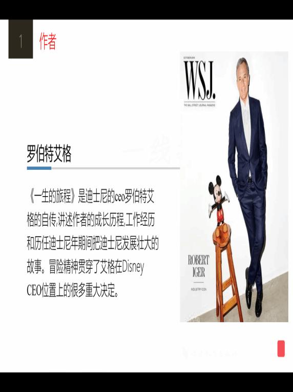 迪士尼公司历经90年的发展,从一家小公司成长为跨国巨鳄,世界500强企业,它的第六任CEO罗伯特·艾格功不可没。《一生的旅程》如作者所说,并不是一本自传,而是Boblger对于自己职业生涯的回顾,进而对经验的总结。刘老师对同学们说,阅读这本书,既可以从中获得对于企业管理、职业成长的思考和启迪,也可以以迪士尼粉丝的心态了解近十几年来领导迪士尼公司的人,和这个公司的发展史及几次重大收购的幕后故事。