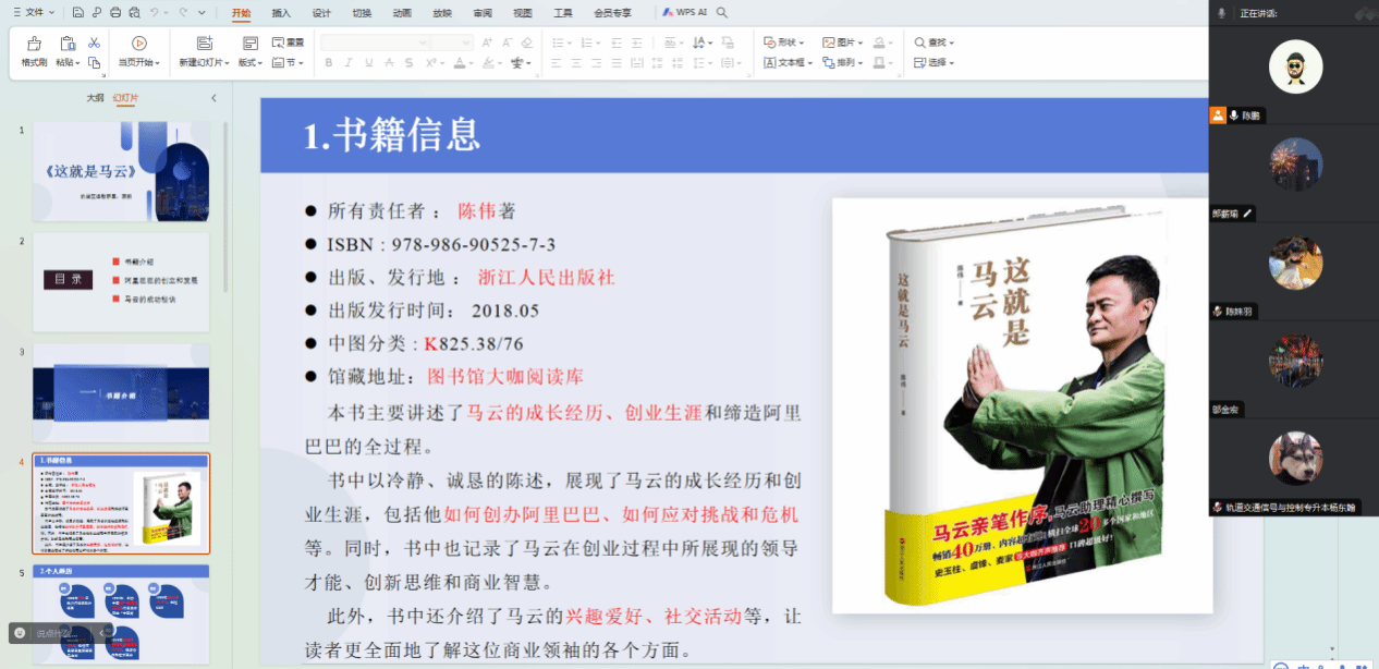 2024年1月24日,轨道交通教研室陈璐老师通过线上腾讯会议的方式组织2022级轨道交通信号与控制专升本1班的学生,开展了大咖传记阅读分享会。