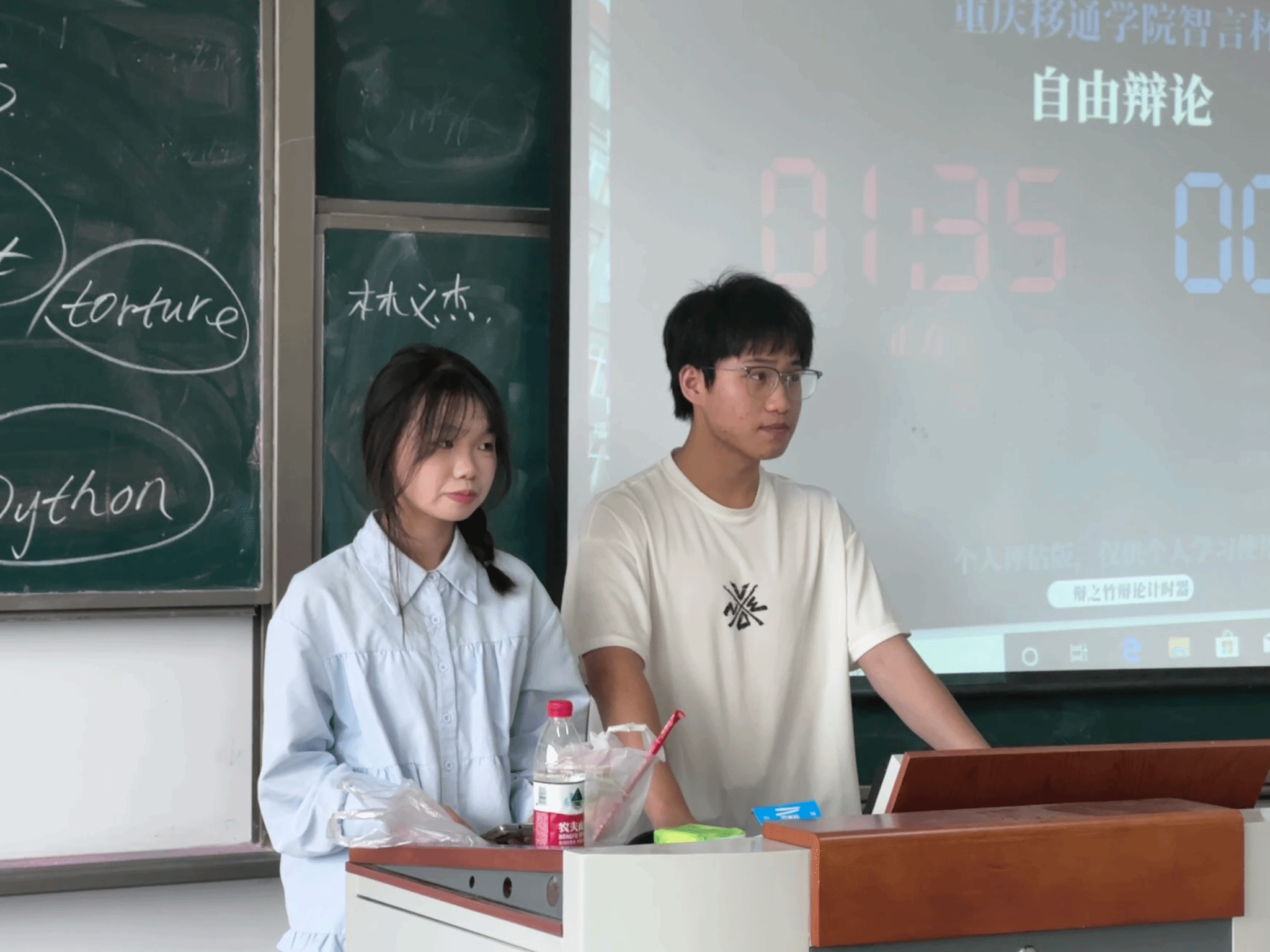 在最经常的自由辩论环节,大家也放下了自己的羞涩,思维不断发散,逻辑愈发流畅。一个接一个的问题,质询、回答,宛如这已经不是第一次打辩论赛一般,双方都在据理力争、侃侃而谈。而在结辩后,评委也稍作离席,商议最后的结果。
