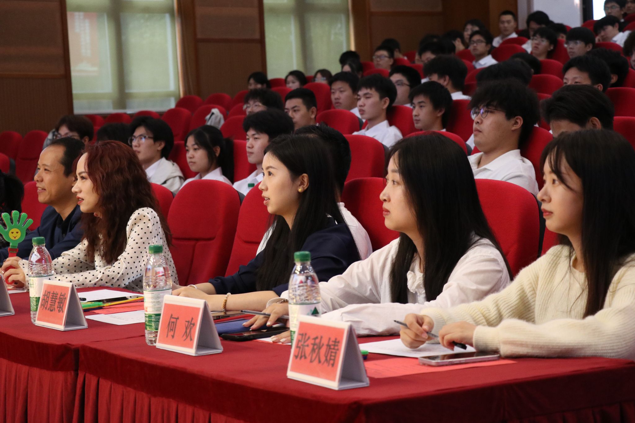 参赛队伍演唱结束之后的观众互动环节将现场氛围带入了另一个状态。对于主持人提出的题目,台下的观众争先恐后地举手抢答,答对问题的同学们获得了精美的小礼物。短暂但热闹的互动环节结束之后,黄丽萍老师、祝玮老师受邀对本次大赛各班的表现以及活动整体情况做出了客观的点评。