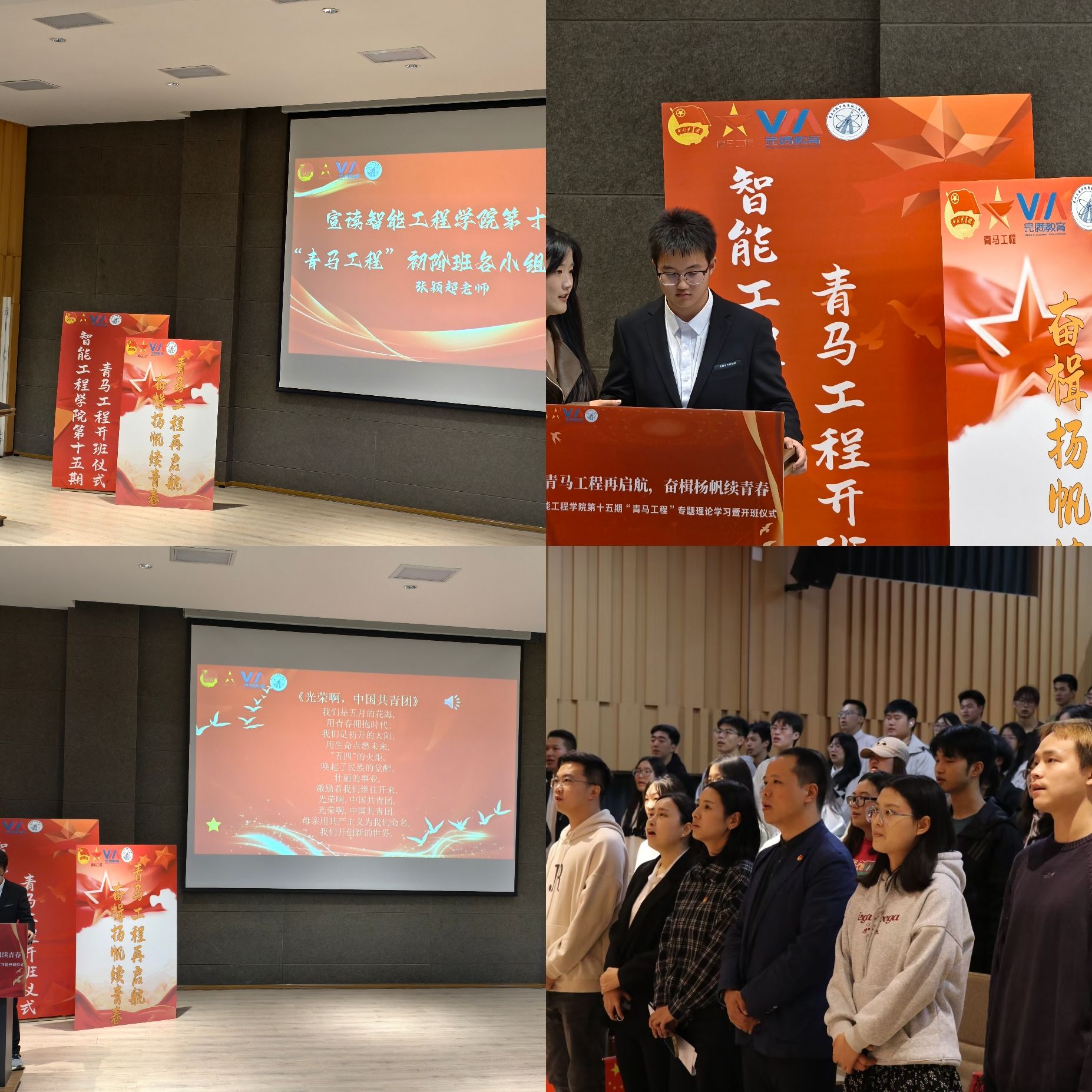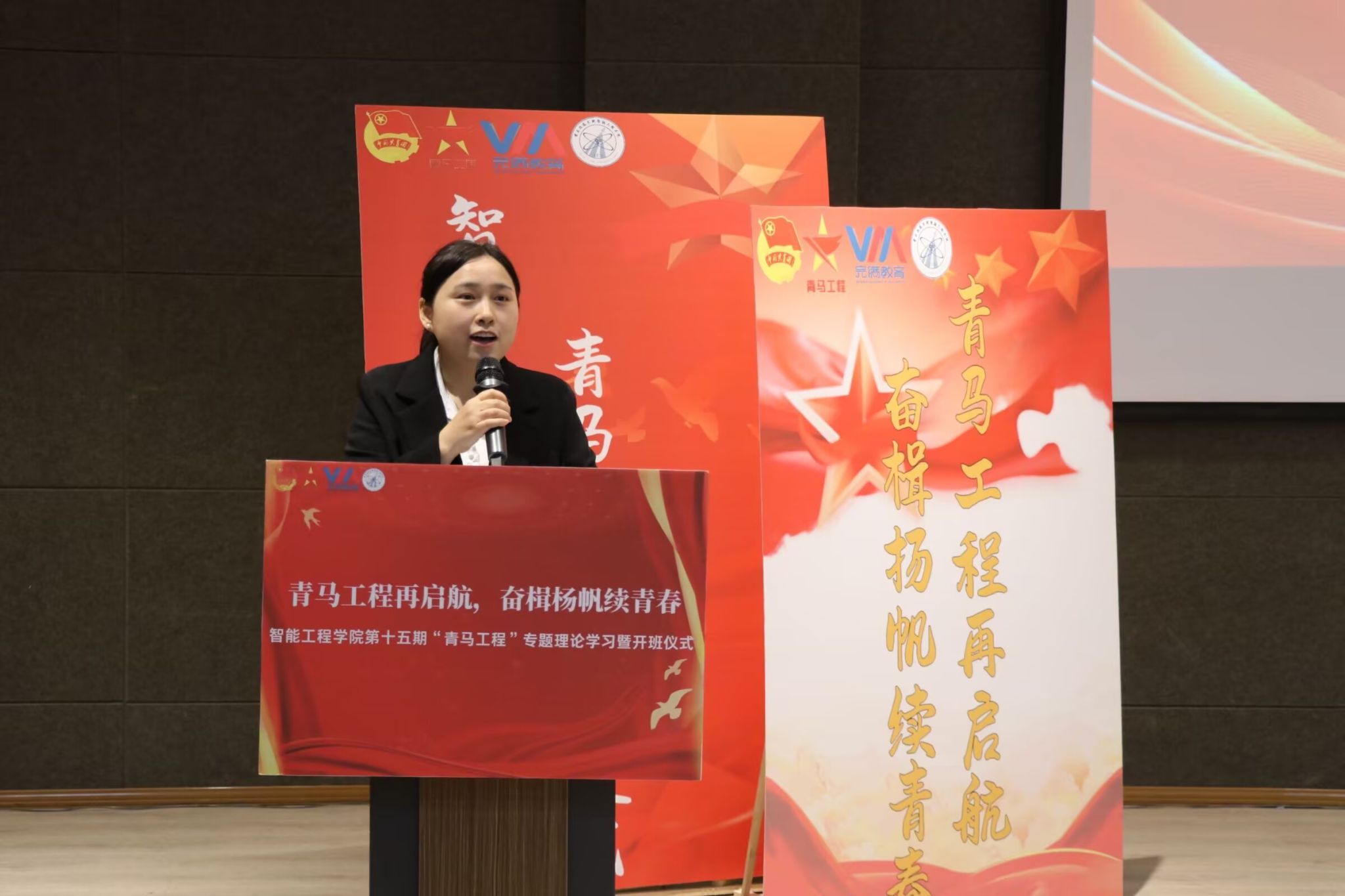 为深入学习贯彻党的二十大精神,扎实推动青年马克思主义者培养工程深入实施,不断强化“青马工程”为党育人的政治功能,提高青年学生的理论素养、研究能力和实践水平,2024年11月1日14点,智能工程学院在六度空间无限多功能厅成功举办了第十五期“青马工程”完满教育学生骨干培养计划(初阶班)专题理论学习暨开班仪式,出席本次开班仪式的嘉宾有智能工程学院副院长祝玮老师、智能工程学院团总支书记张颖超老师、智能工程学院专职团干部徐非老师、智能工程学院青马工程指导老师陈林老师、智能工程学院学生第一党支部书记黄一老师、马克思主义学院任捷雅老师以及第十五期“青马工程”初阶班全体学员,秘书处徐宏伟担任此次活动主持人。