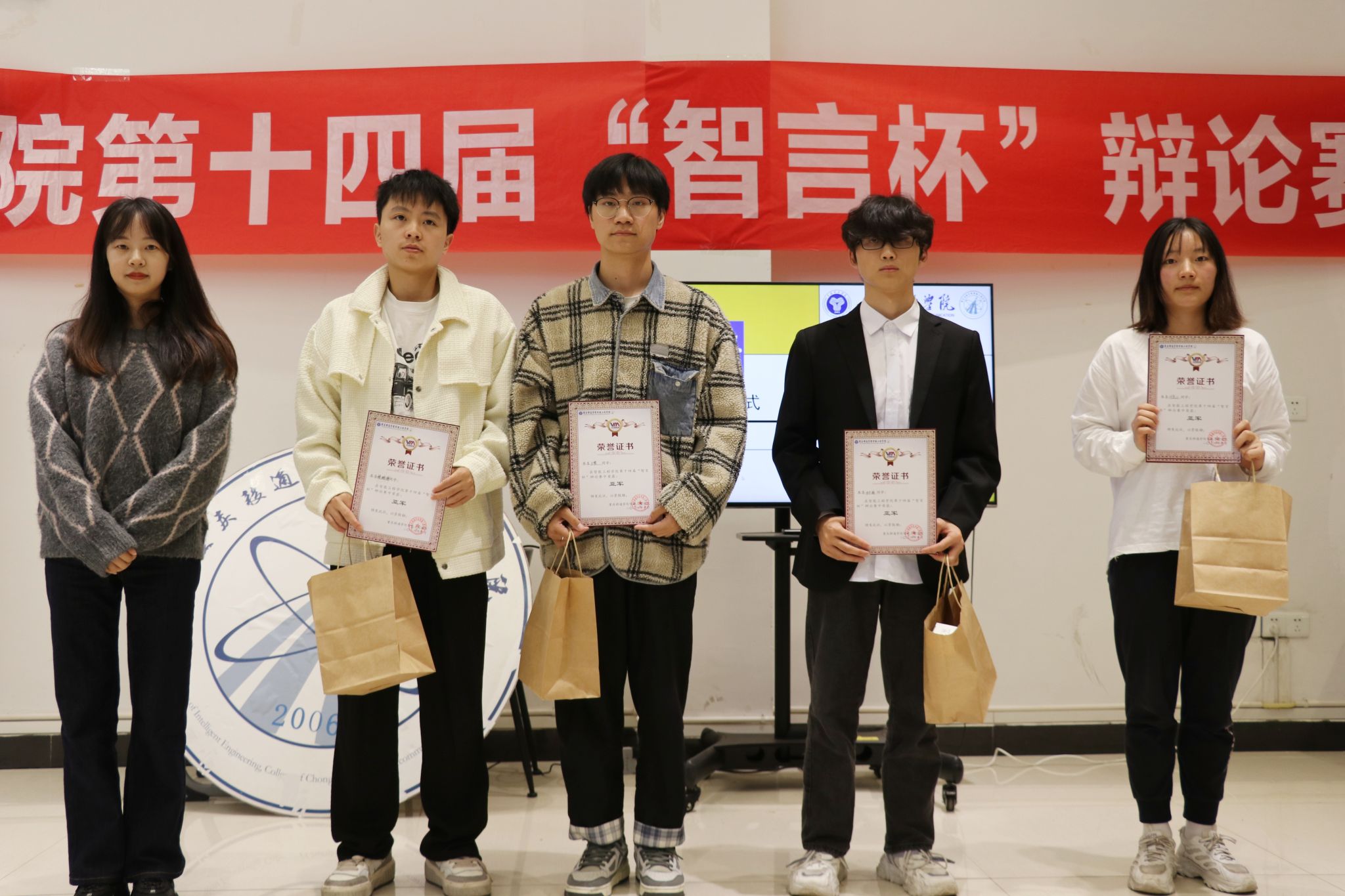 经过评委们的审慎评判,冠军之冕终于花落有家。最终2024级电气类3班以其卓越的表现、默契的配合和清晰的逻辑赢得了最终的胜利,成为了本届“智言杯”辩论赛决赛的王者之师。2024级机械制造及其自动化(专升本)5、6、11班组合队伍获得亚军,2024级自动化类3班、7班获得季军,电气类3班阳博同学以其犀利的言辞、敏捷的思维和出色的应变能力,在众多优秀辩手中脱颖而出,荣膺“最佳辩手”殊荣。在颁奖仪式上,学院老师亲自为他们颁发证书,那一刻,荣誉之光洒满全场,这不仅是对他们辛勤付出的回报,更是对他们智慧与才华的肯定。