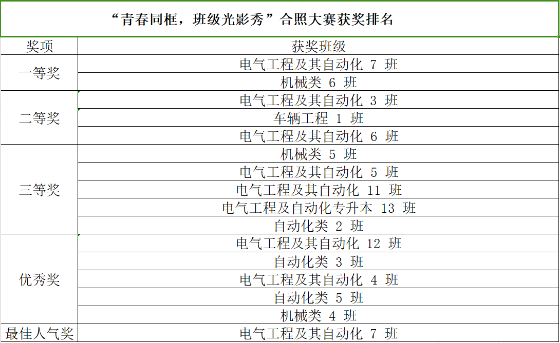 经过评委老师们从照片的主题创意、构图技巧、答辩内容等方面综合打分,最终评选出了本次新生班级合照比赛获奖班级及最佳人气奖班级。