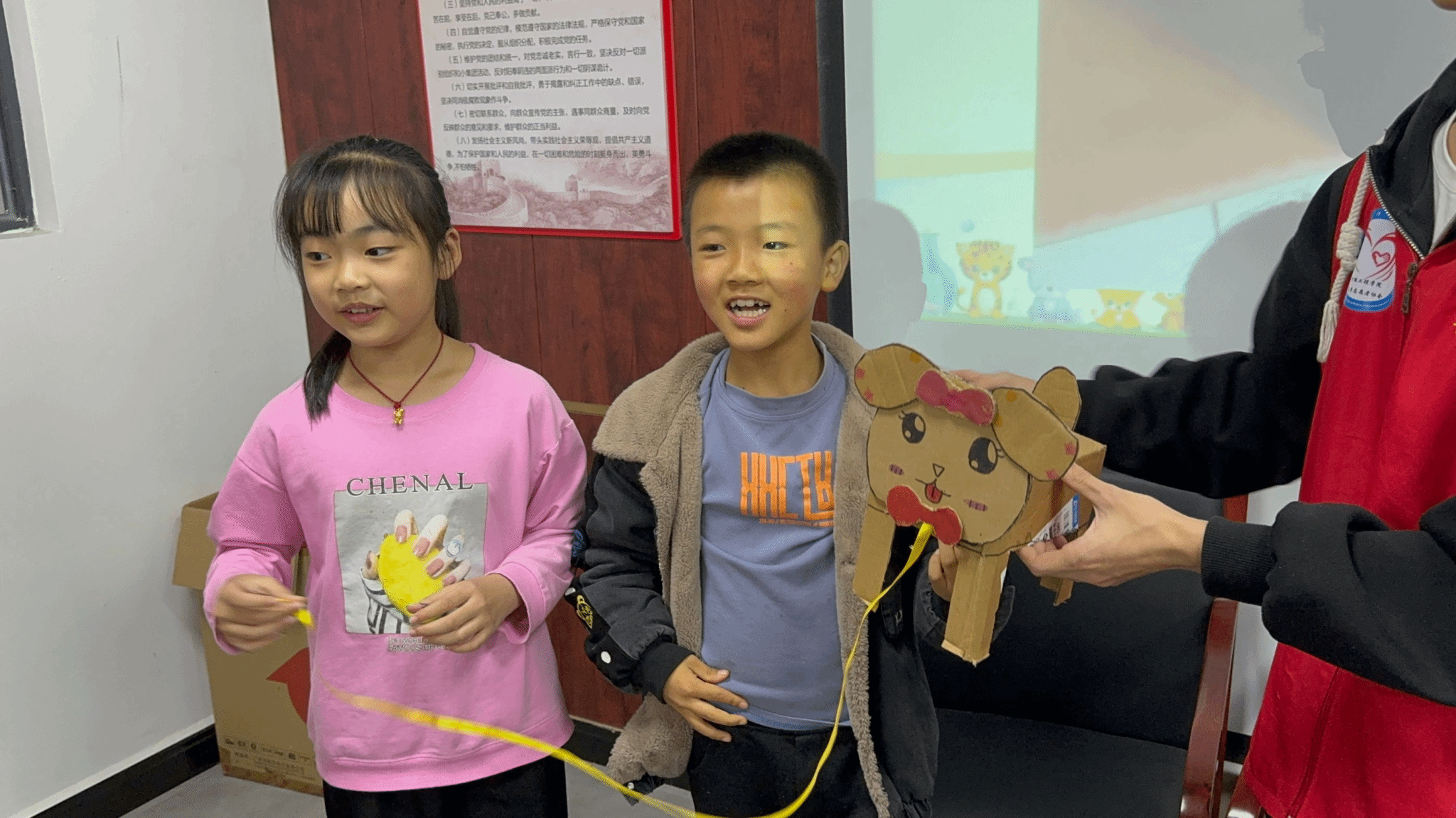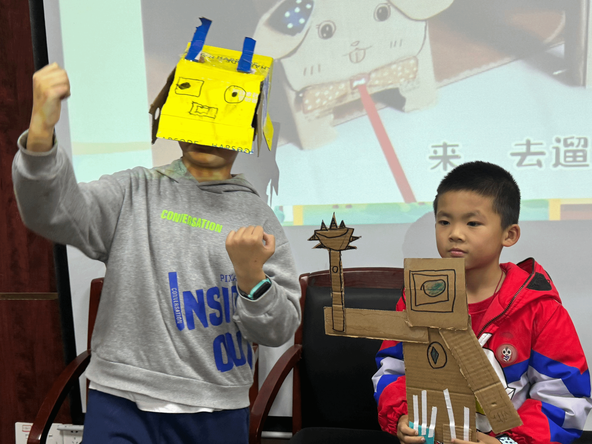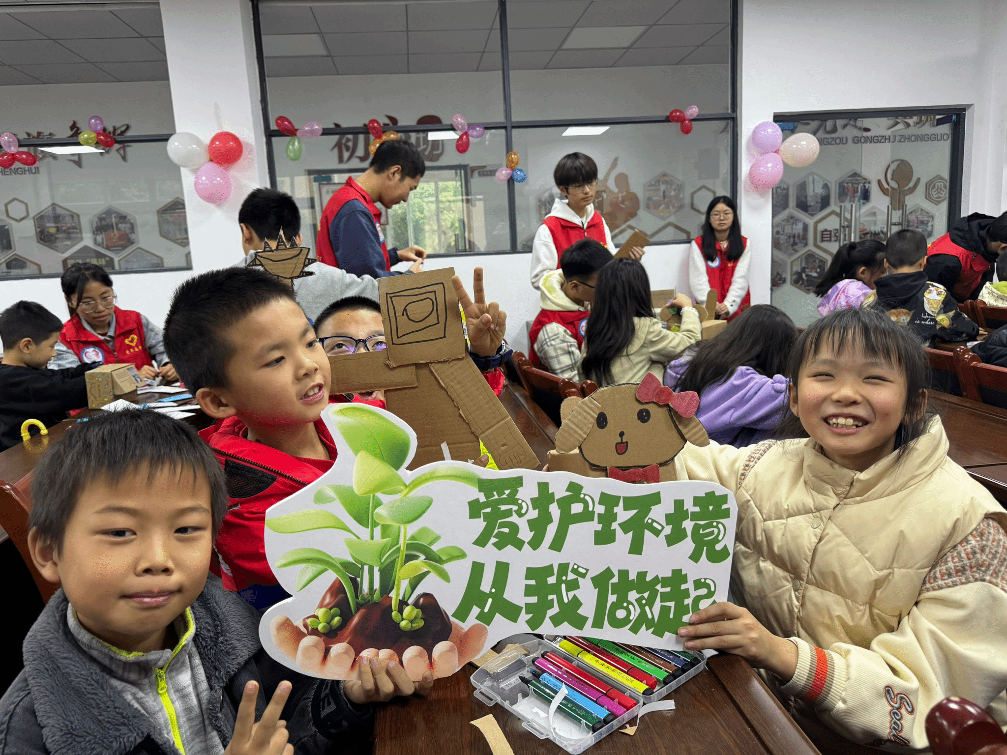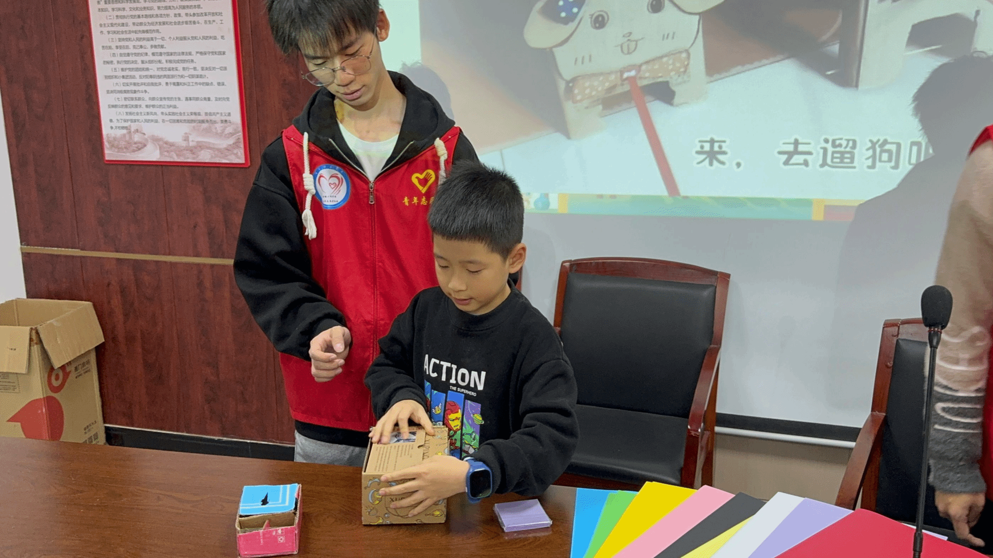 为使环保理念入脑入心,提高小朋友们的动手能力,志愿者们利用前期收集的废纸箱带领小朋友开展环保手工制作。在志愿者的指导下,孩子们兴致勃勃地投入到手工制作中,有的用废旧纸张折成了精美的小狗,有的做成了机器人。每一件作品都凝聚着孩子们的智慧和创意,也展现了他们对环保的热爱和关注。活动现场充满了欢声笑语,孩子们不仅享受到了手工制作的乐趣,还通过实际行动践行了环保理念。