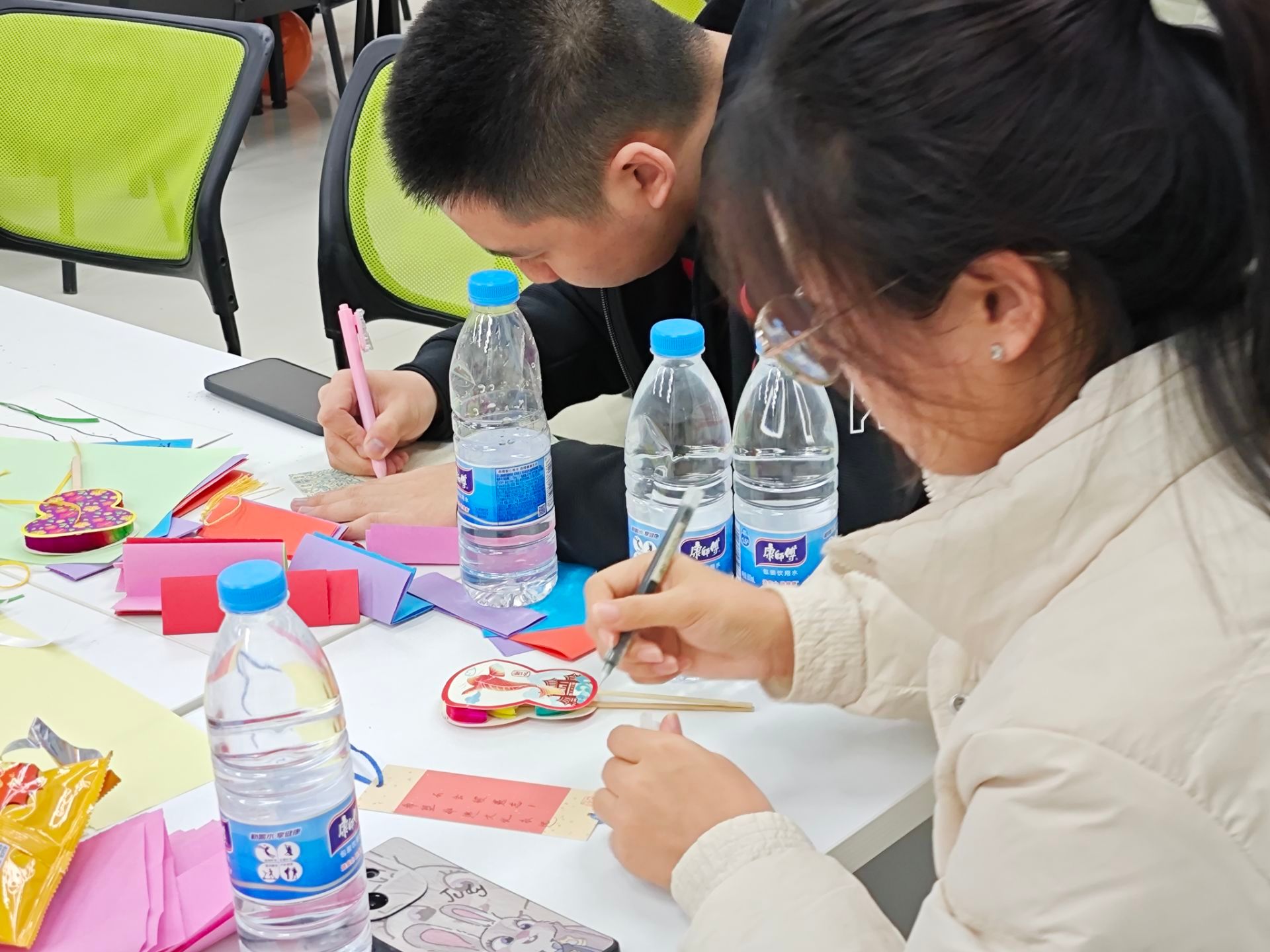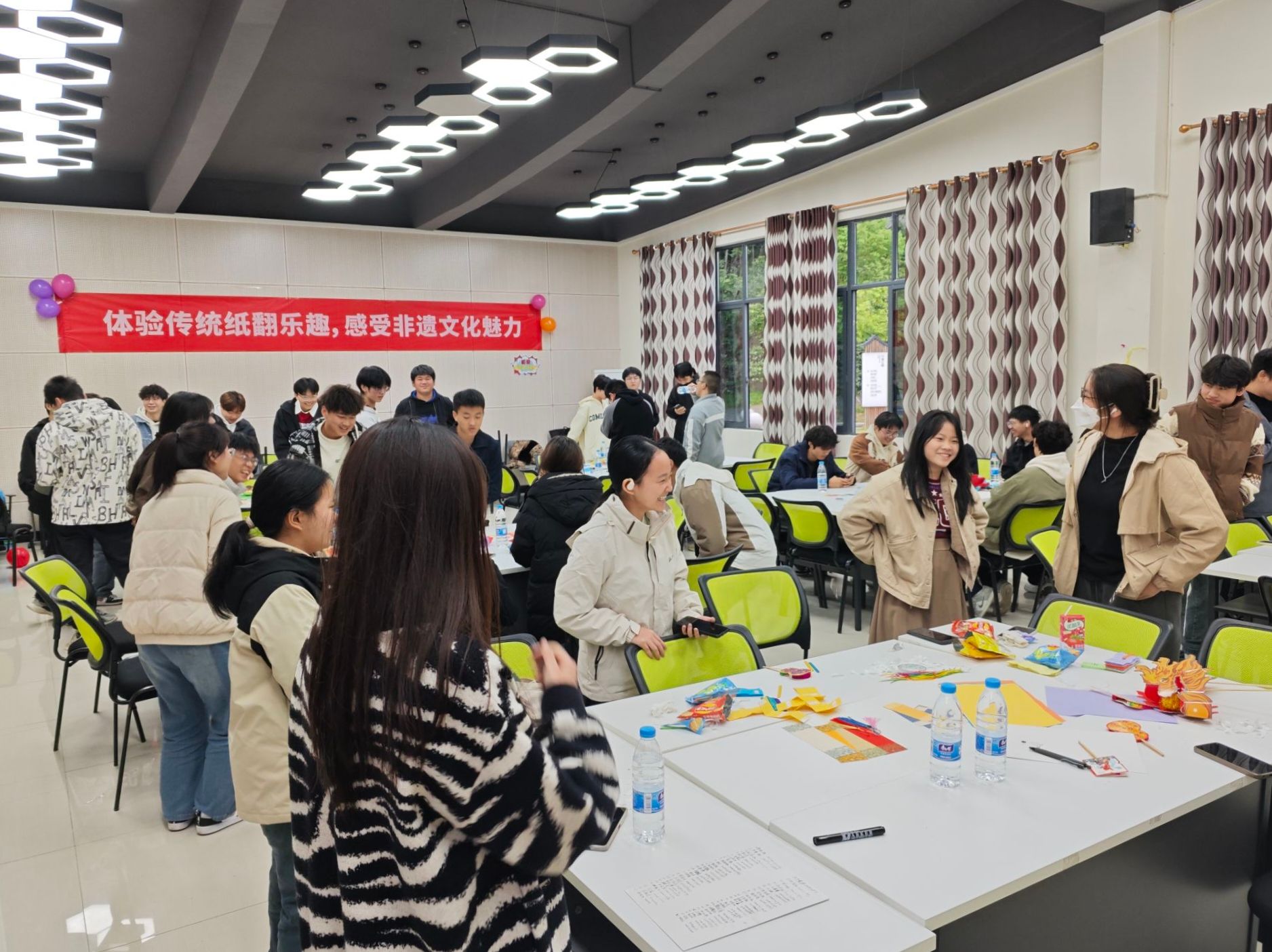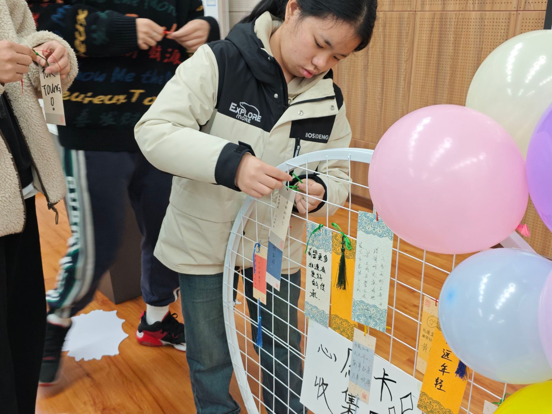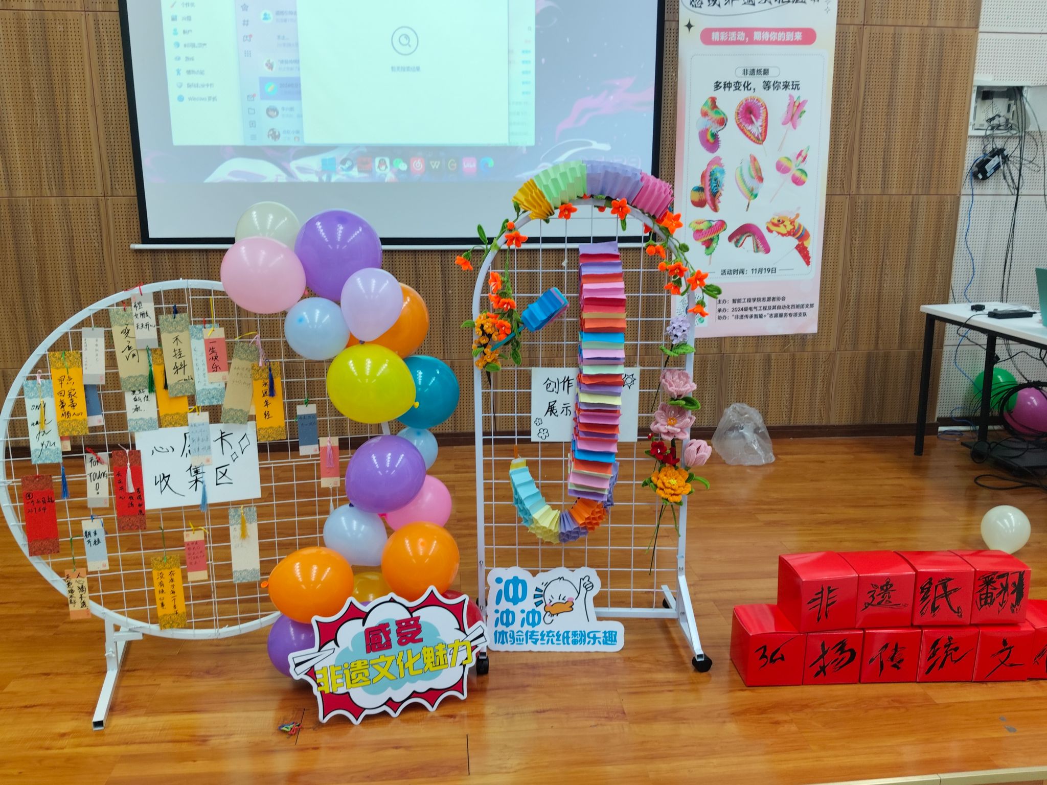活动进入尾声,每位同学都真诚地在祝福卡上写下对本次非遗纸翻文化体验活动的感想以及对中华非物质文化遗产传承与发展的美好祝愿。伴随着一张张祝福卡与纸翻作品装饰在展览区域,此次完满超级团支部活动也迎来尾声。同学们纷纷表示,在此次活动中不仅沉浸式地体验了传统文化的独特韵味,更深刻感受到了民族精神的深远影响与强大力量。