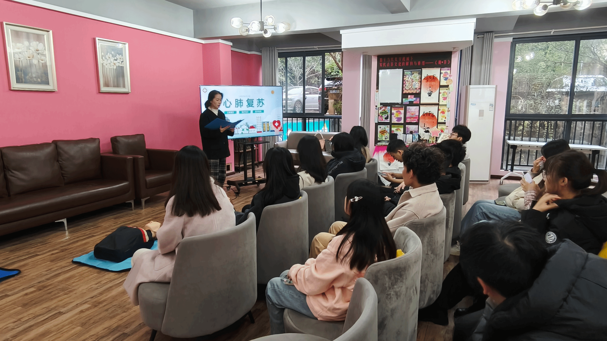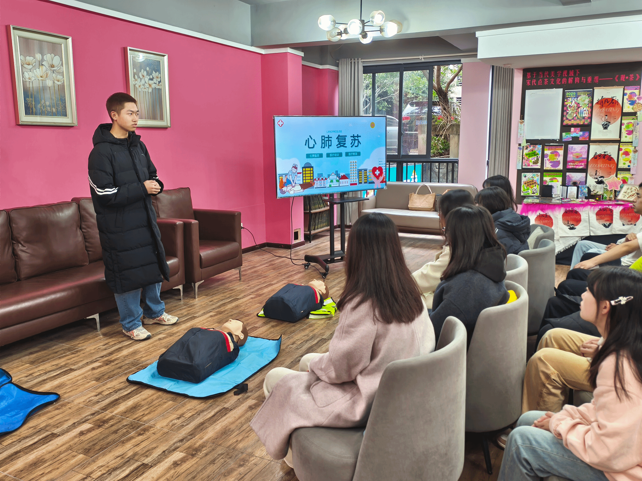 在紧急情况下,每一秒都关乎生命。为了普及急救知识,提高大家在紧急情况下的自救互救能力,我们举办了一场以“拯救生命,从‘心’开始”为主题的心肺复苏急救活动。活动开场,主持人向参与活动的同学们致以诚挚欢迎,并着重强调了掌握心肺复苏等急救技能在当下的关键意义。其指出,日常生活中意外频发,而正确的急救方法在危急时刻可能成为挽救生命的关键因素,犹如黑暗中的希望之光。