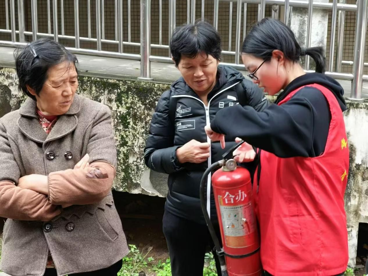 到达现场后,我们为社区群众讲解了如何使用灭火器和使用灭火器的一些相关注意事项,并向他们进行了演示。其次,我们将消防知识宣传手册发给社区群众们,希望他们能够掌握好消防基本知识,同时提醒他们注意好平时的用电用火安全,在应对火灾时保持冷静。