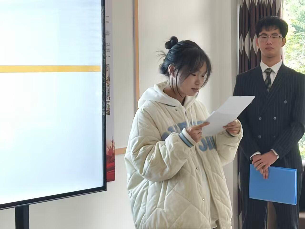 2024级班级代表也与大家分享了自己对本次活动的初步理解,大家在快节奏的生活中已经被手机裹挟,机不离手,有依赖症状,在课堂上很容易分心,无法集中注意力,希望大家可以通过这个活动,物理性地为自己做一次“断舍离”实验,重拾课堂信心。随后,在主持人的号召下,各班班级代表在现场阅读本次活动的倡议书并代表各班签署了承诺书。