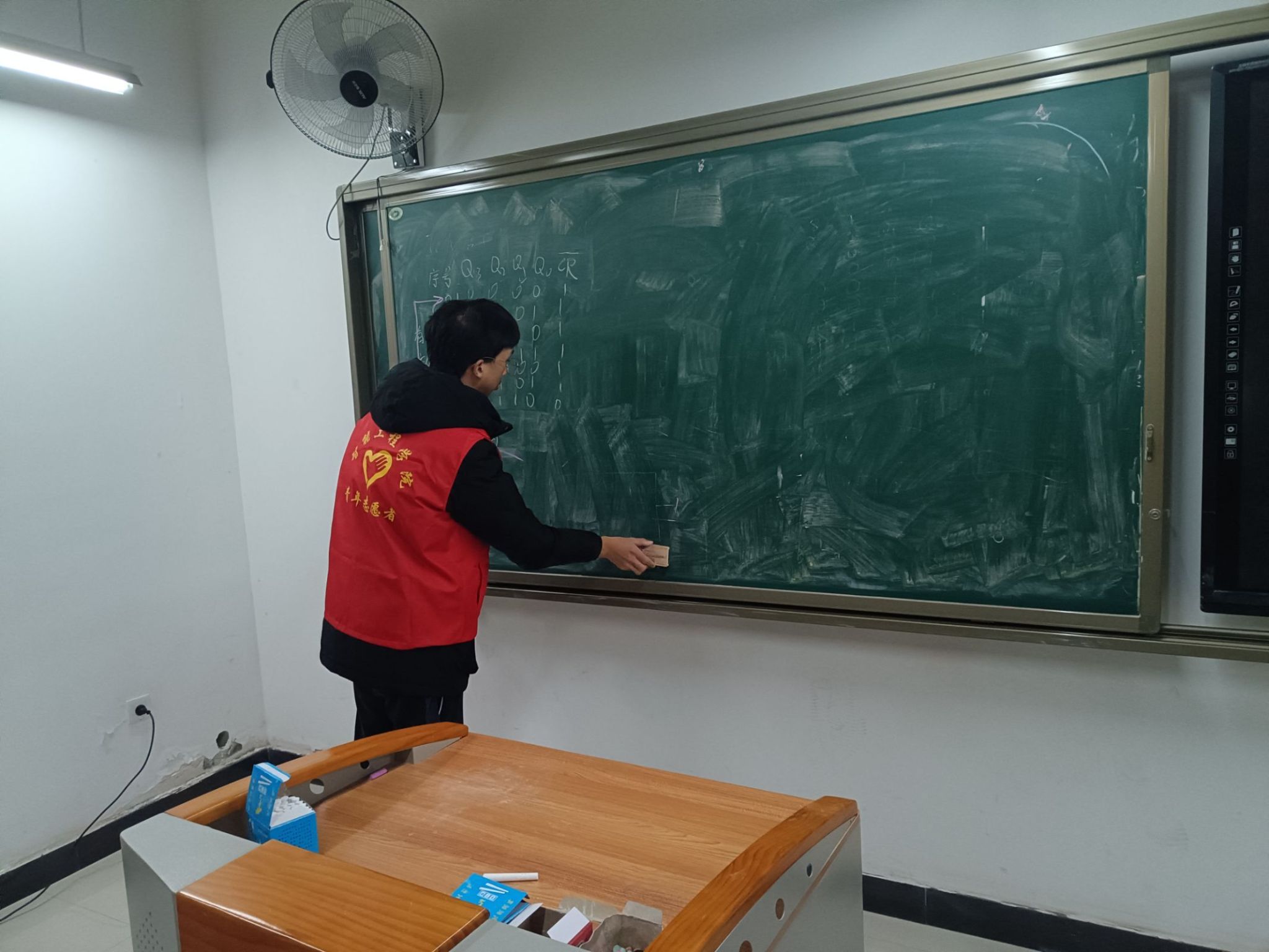 志愿者们身着那极为醒目的红马甲,宛如一团团熊熊燃烧的热情之火,带着满心的热忱毫不犹豫地迅速投身于工作之中。他们的身影活跃在教室的每一寸空间,在走廊里不停来回穿梭,细致入微地清扫着每个角落。此外,一部分志愿者全神贯注地认真清扫地面,那专注的神情仿佛在与尘土垃圾进行一场决战,直至将其全部清扫一空;一部分志愿者仔细地擦拭黑板,黑板重新焕发出迷人光泽;还有一部分志愿者精心整理办公区域,将原本杂乱无章的桌面变得整齐有序,各类物品各归其位。另一方面,花坛边的志愿者们用自己勤劳的双手,耐心且执着地剔除校园里的每一处污渍,不放过任何一个微小的瑕疵。在整个辛勤劳动过程中,志愿者们脸上始终洋溢着灿烂且满足的笑容,他们的热情仿若轻柔的春风化雨一般,悄然无声却又极具力量地感染着来来往往的师生,在每个人心中种下公益的种子。