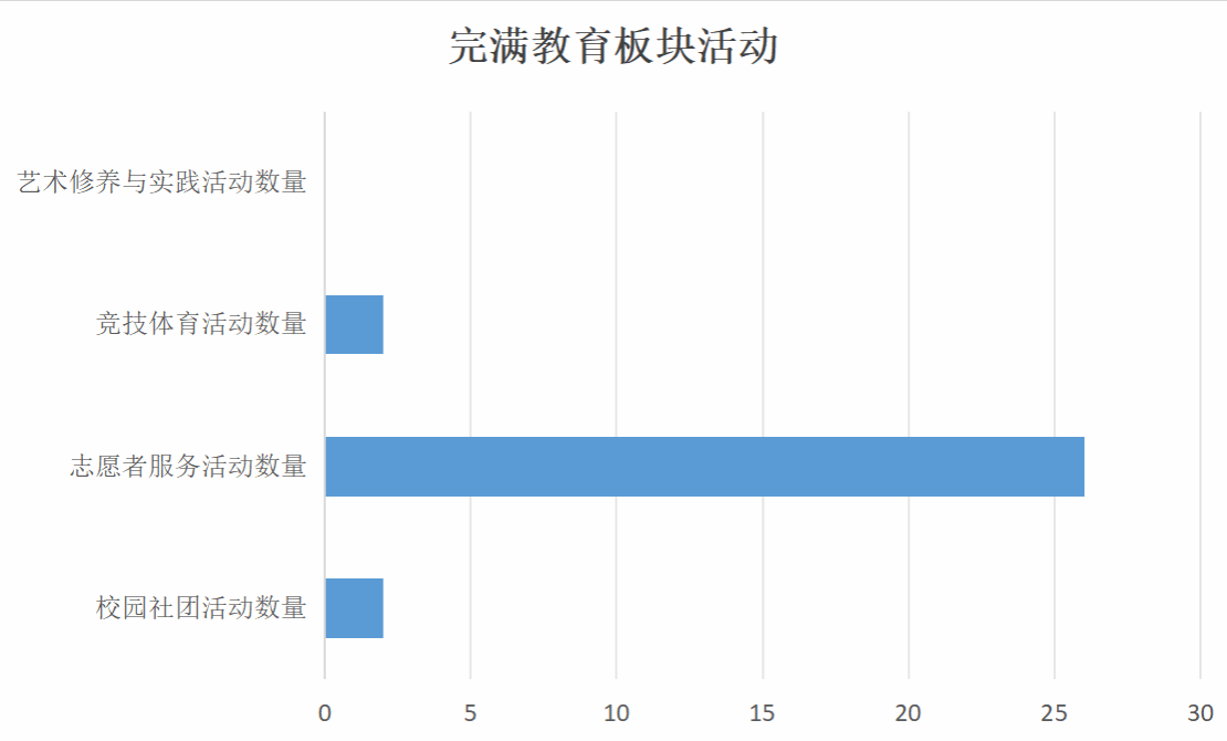 由这个月的数据来看,智工的竞技体育活动参与人数最多,可见,智工的小伙伴对竞技体育有着浓厚的兴趣,这正是作为大学生的我们应该具备的活力。在完满教育活动中,每一个活动都能帮助我们和外界进行交流,丰富我们的内涵,让我们的内核更强大。在这些完满活动中,我们可以在专研学业的同时也可以看看校园中其他人丰富多彩的生活,丰富自己,做到德、智、体、美、劳全面发展。