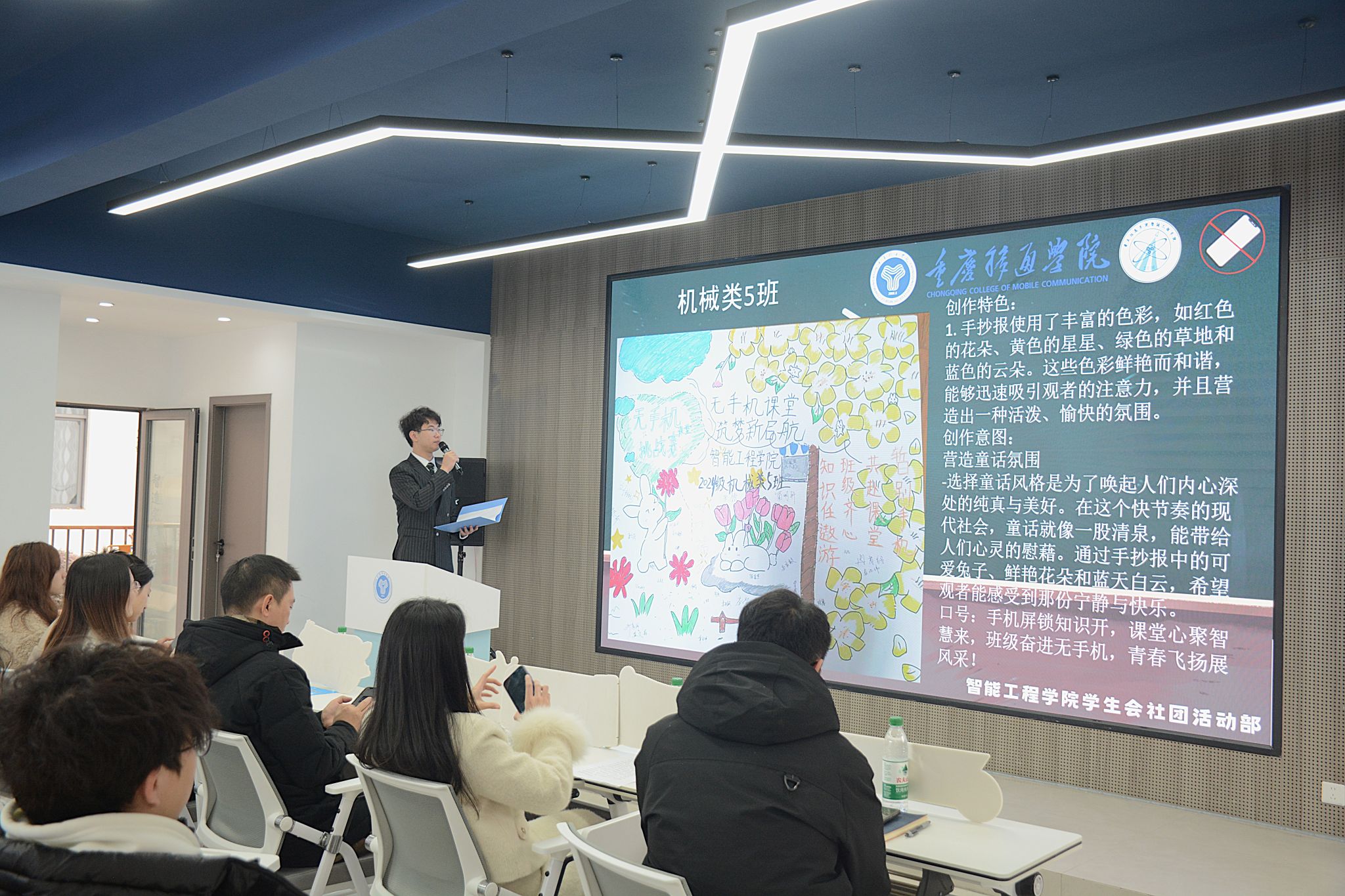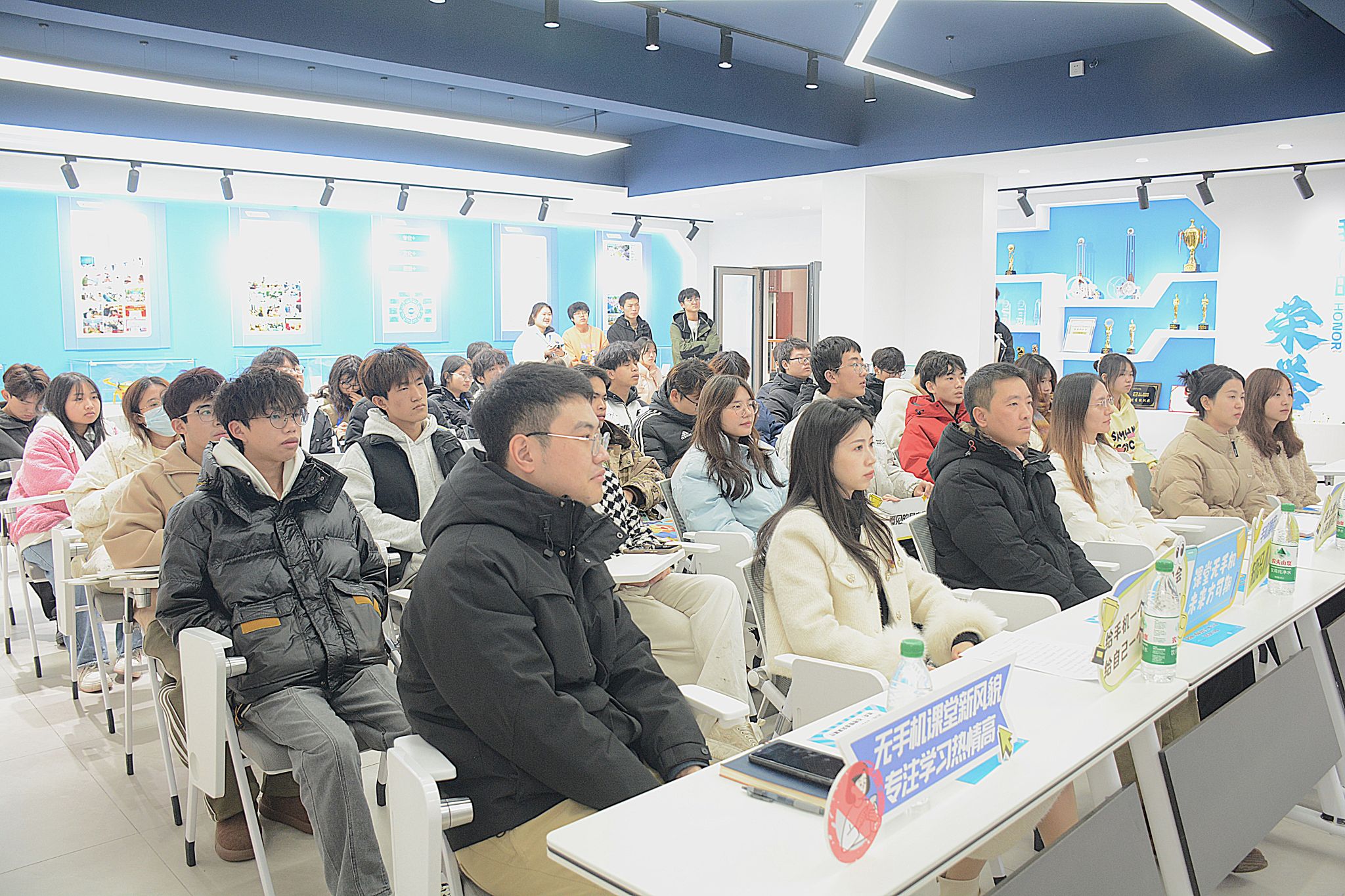 课堂是学校育人的第一阵地,是人才培养最关键、最核心、最重要的一环。为提高课堂教学成效,引导学生回归课堂,加强学风建设,智能工程学院举办了第十三届“无手机课堂”挑战赛。本次比赛为期三周,12月20日下午14:00,闭幕式于松格书院智造完满展厅举行,智能工程学院学工办主任刘桃老师、电气教研室主任晁晓洁老师、辅导员胡慧敏老师、唐宇老师、校园社团板块指导老师吴家家老师以及24级各班级学生代表参加。