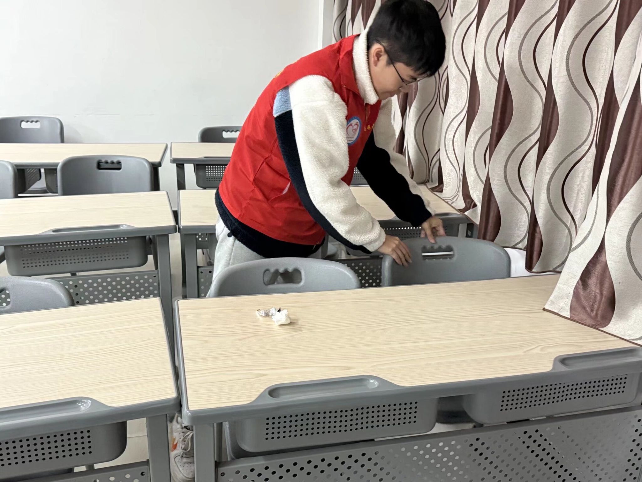 活动伊始,为保证本次活动能够有效开展,学生负责人就对本次志愿服务的内容进行了详细的工作分工,在场志愿者们专注地聆听,随后奔赴各自负责的区域。活动期间,有的志愿者站在黑板前,仔细地擦拭着黑板,给接下来的教学活动提供良好的条件;有的志愿者认真地清扫地面垃圾、擦拭桌椅门窗、清理卫生死角;有的志愿者穿梭于校园各个角落,仔细的清理着花坛、路上的垃圾。同时,志愿者们也进入了老师们的办公室,将办公室的书本分类叠放,文具归位,试卷和文件整理成册,原本堆积如山的桌面渐渐变得井然有序,各类物品摆放得整整齐齐。参加活动的同学们纷纷表示,校园是学习与生活的家园,通过自己的双手让它变得更加美丽干净,是一件非常棒的事情。