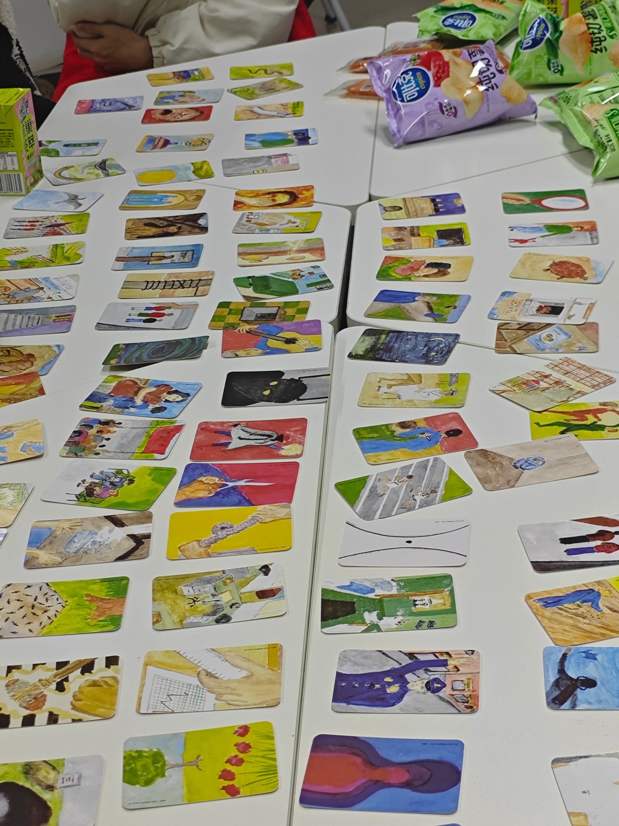 最后进入“OH卡解密人生关系”环节。同学们抽取神秘的 OH 卡,XX老师向同学们详细介绍了 :OH 卡这一独特的心灵探索工具,能够帮助人们深入潜意识,挖掘内心的情感与思绪,探寻人际关系的奥秘。让几个同学借用卡牌进行故事接龙并为故事取名,又或者让同学们根据卡牌以绘画非文字的形式自由拓展。在 OH 卡的启发下,同学们学会了倾听内心的声音,更加珍惜身边的人际关系,共同在心灵成长的道路上迈出了坚实而有意义的一步。