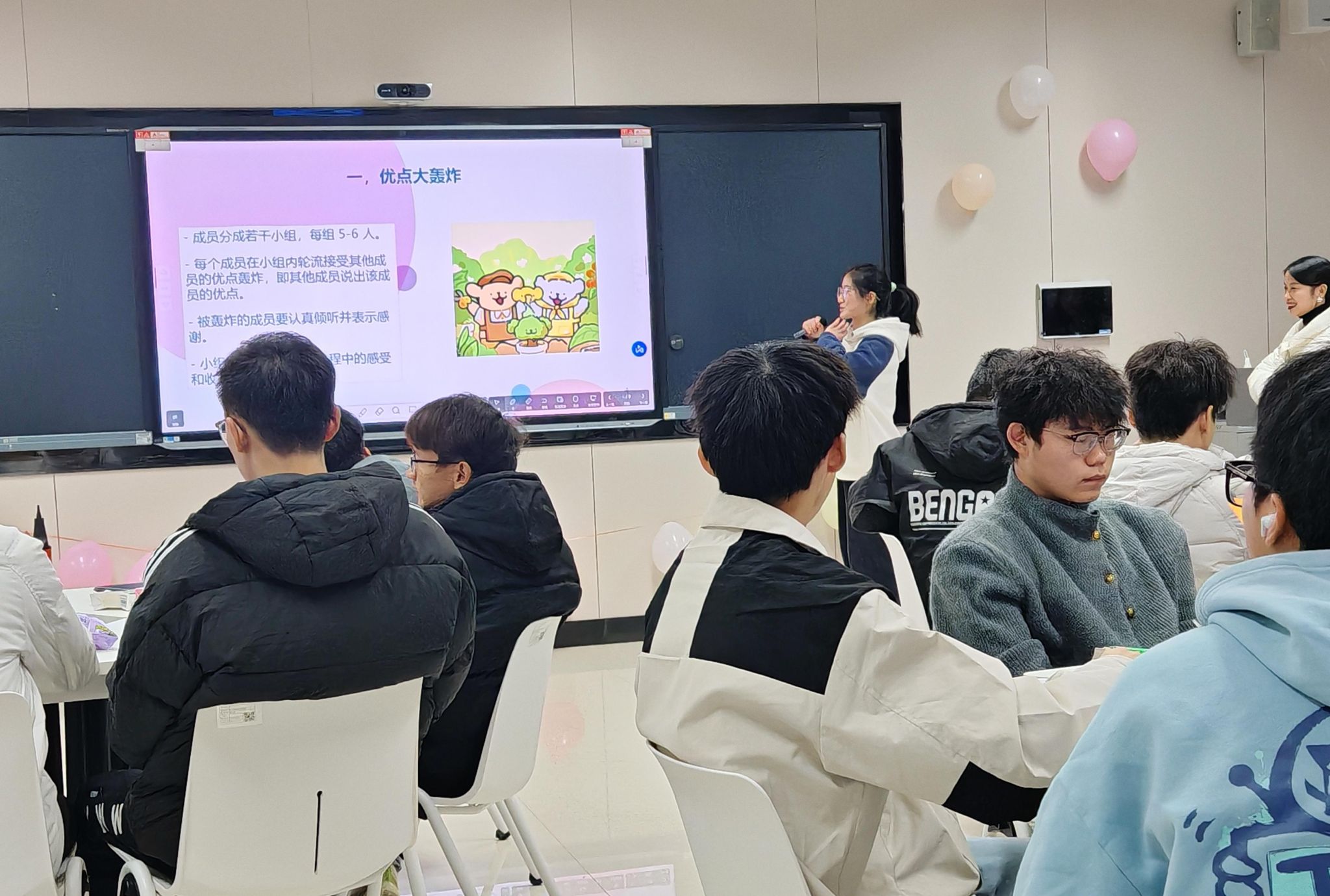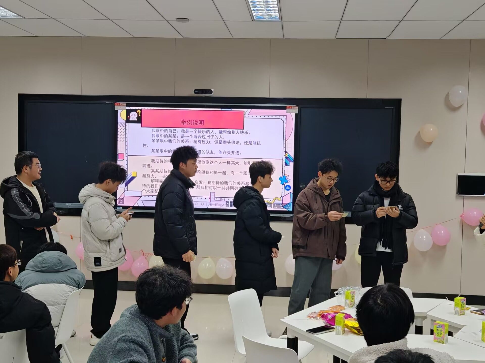 冬至袭来,暖意不断,雨雪纷纷,爱意永恒,高中生活悄悄离去,大学生活崭新到来,面对新的生活环境,不免在人际关系方面存在沟通不畅,缺乏自信等问题,为了更好的适应学校生活提高人间交往能力,2024级电气工程及其自动化11班联合智能工程学院“小红花”志愿服务专向支队,于2024年12月10日举办了一场名为“内心奇幻剧场,编织人际绮梦”的人际关系心理团辅活动。本次活动邀请到了校心理健康教育中心兼职心理教师谭英姿老师、杨子莹老师及张颖超老师。本次活动以丰富多彩的互动游戏为载体,促进人际关系为目标,让参与到本次活动的同学们收获满满。