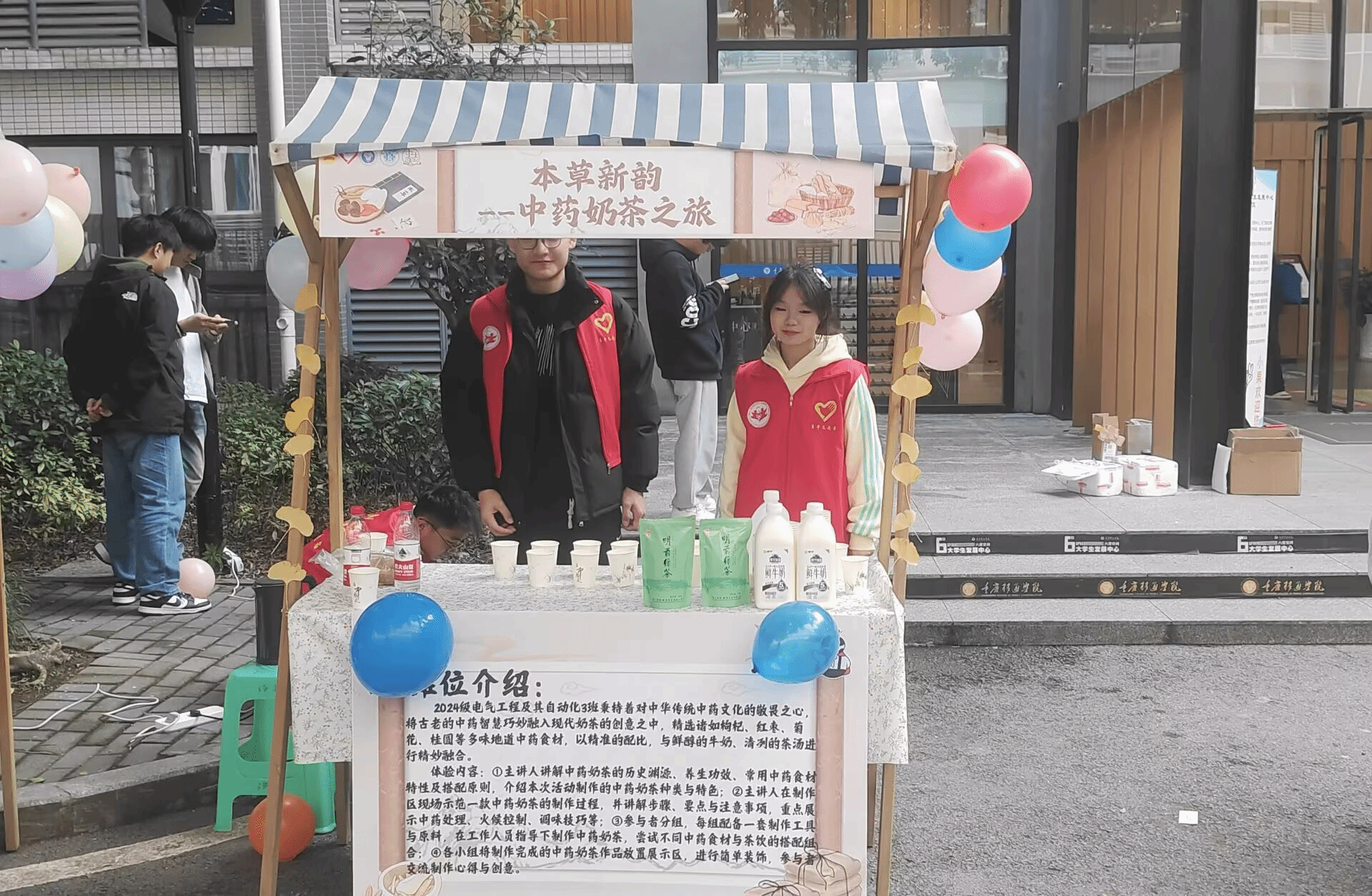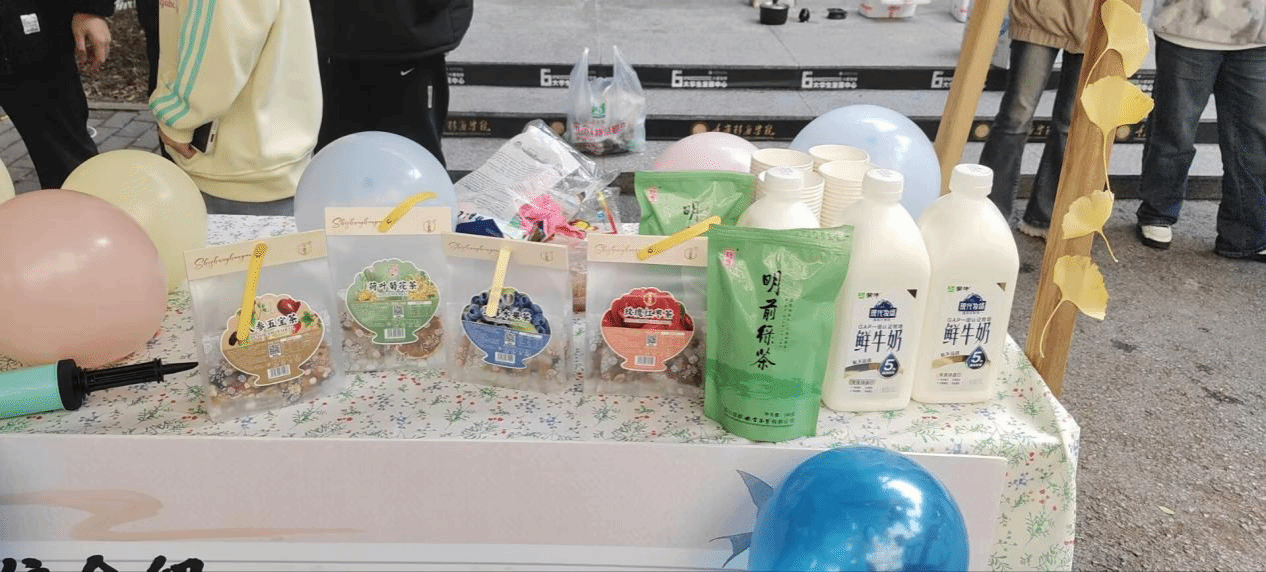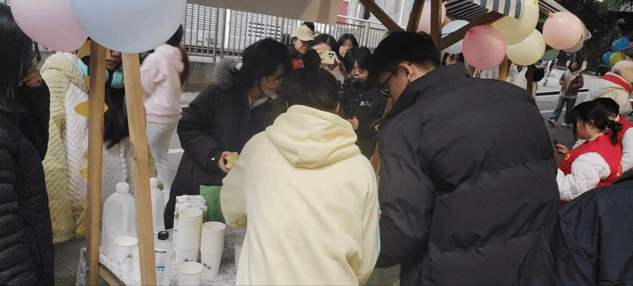 在之后的暖场活动中,学子们在助手指导下按示范步骤制作中药奶茶,尝试不同中药食材与茶饮的搭配组合,在欢快又温馨的气氛中制作属于自己的暖冬奶茶,在充满趣味性的调制中锻炼了动手能力,不断提高自身综合素养、思想觉悟、组织能力。