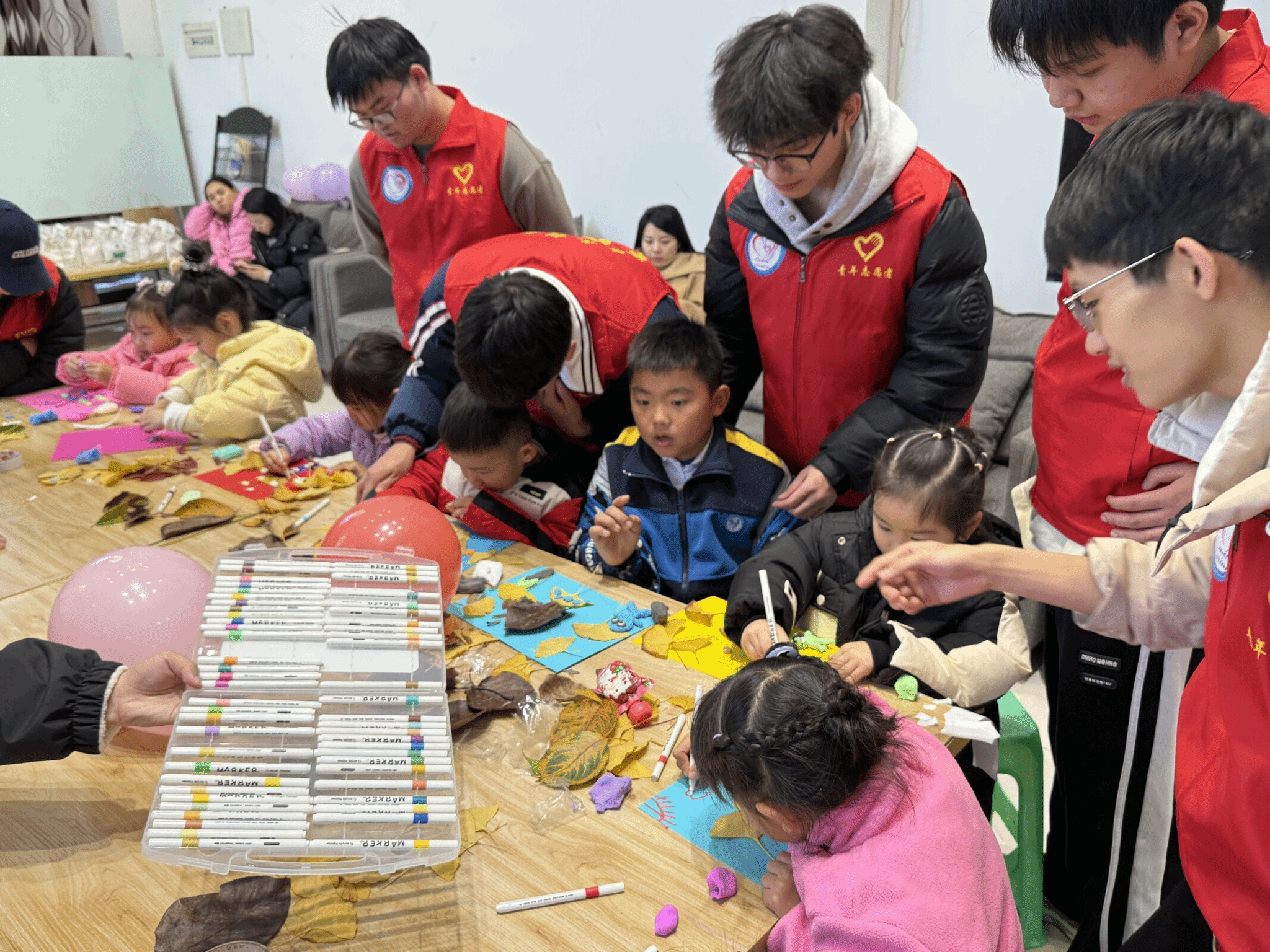 随后的户外活动,将小朋友们的好奇心带入了大自然的怀抱。小朋友们在志愿者的带领下,走出活动室,进入了绿意盎然的草地。他们捡拾五彩斑斓的秋叶,每一片树叶在他们手中都变成了珍贵的宝物。回到室内后,小朋友们用手中的彩纸、彩笔和粘土,塑造出一个个栩栩如生的“新朋友”,这些小小的艺术作品不仅承载着小朋友们对世界的想象与热爱,还让小朋友体验到网络世界外的别一番趣味。