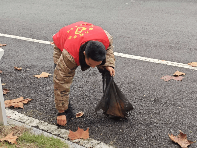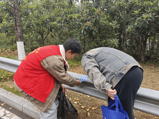 活动伊始,班级同学在班委的组织下做好点名、签到、准备工作后。大家身着鲜艳的红马甲,如同一股股涌动的清泉沿着行者公园至双栀书院马路捡拾草地上和马路边的白色垃圾和烟头等有害物品,大家目光如炬,不放过任何一片垃圾。此外,道路上,落叶、烟头与废弃纸张也被大家一一清扫归拢;草丛中的塑料瓶、包装袋在志愿者们的细心搜寻下无所遁形。每一个弯腰、每一次清扫,都饱含着对环境的呵护与热爱,大家用实际行动诠释着环保的决心,让校园在这一场清扫中渐渐褪去污垢,展露清爽容颜,也让绿色环保的理念如春风化雨,悄然沁入每一位同学的心中。