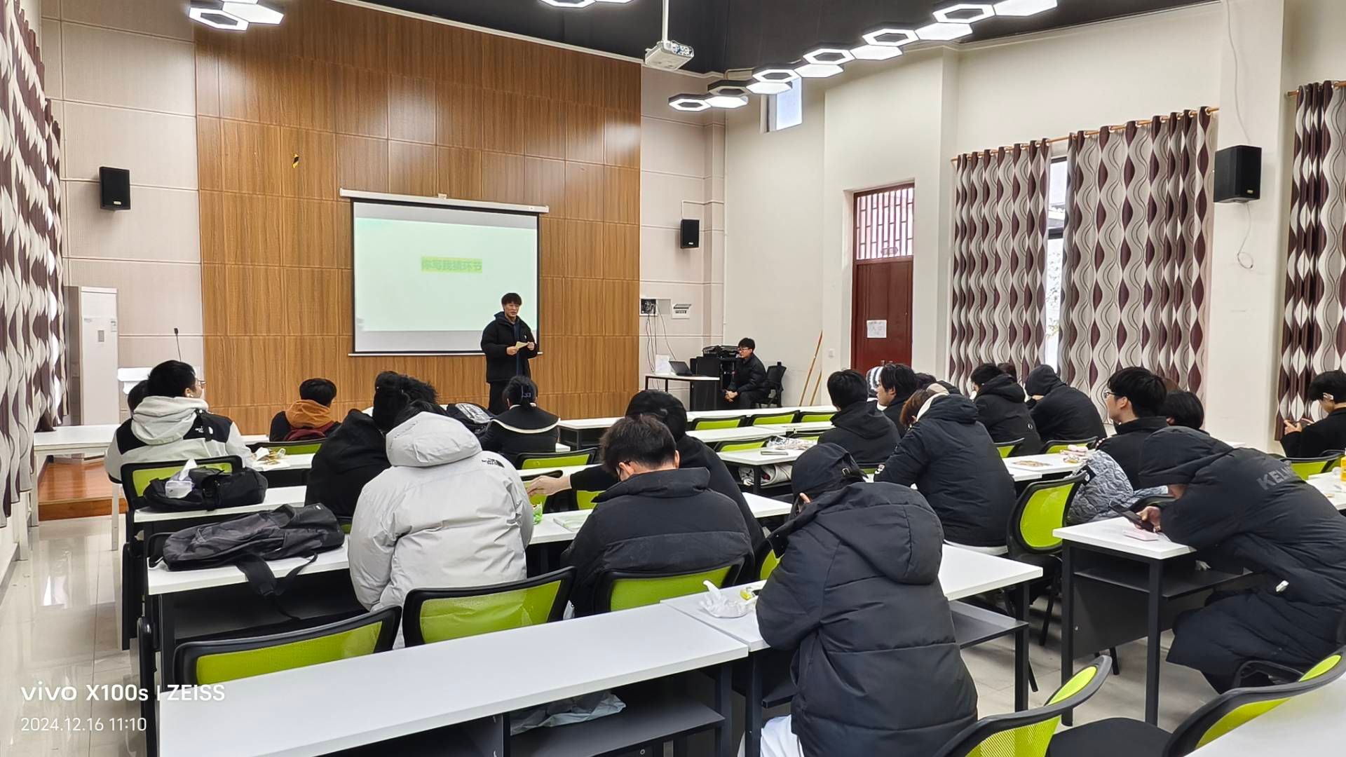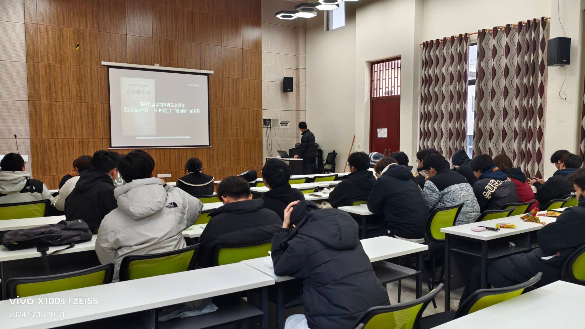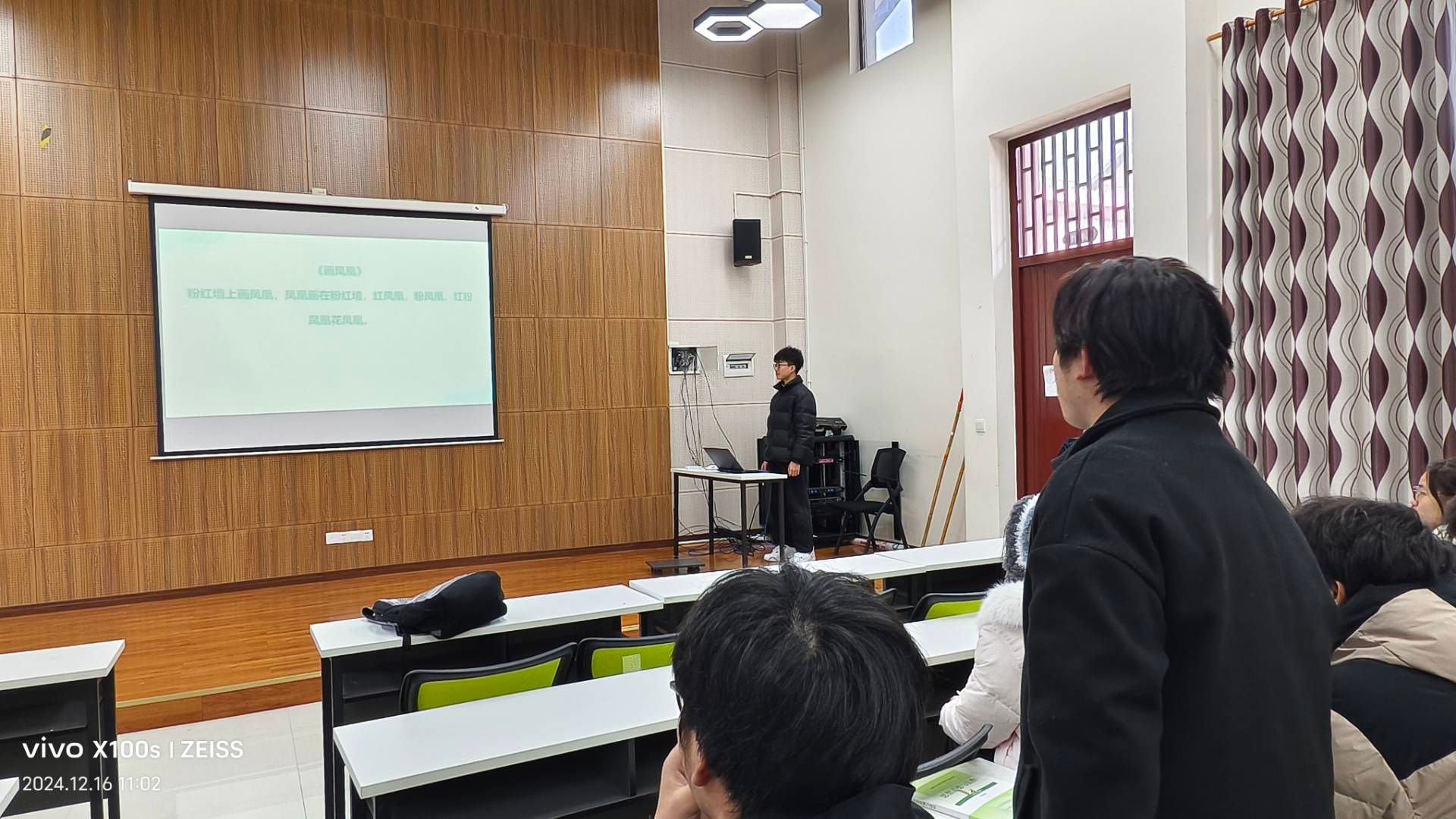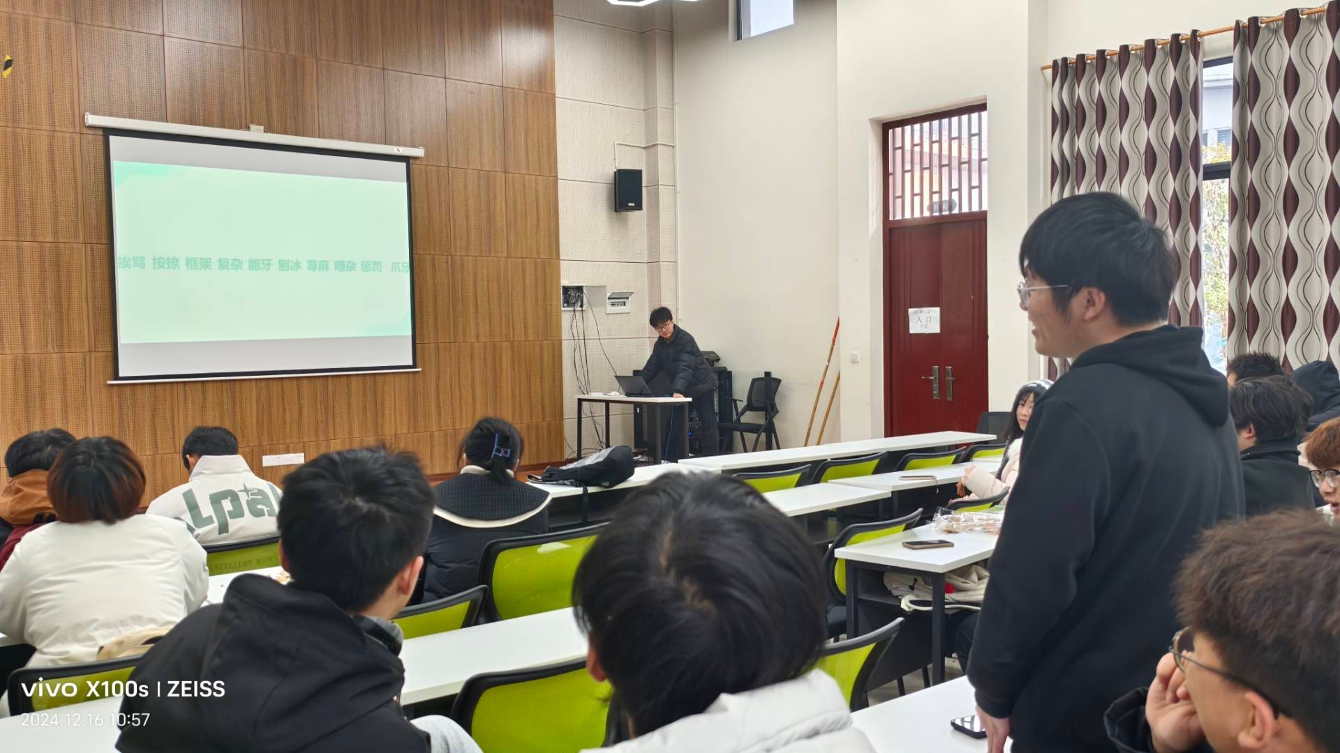 活动之初,主持人以视频宣讲的形式让大家初步了解了普通话背后的由来,发展历程以及学习普通话的深刻意义,每一位同学都很认真的感受普通话的重要性。